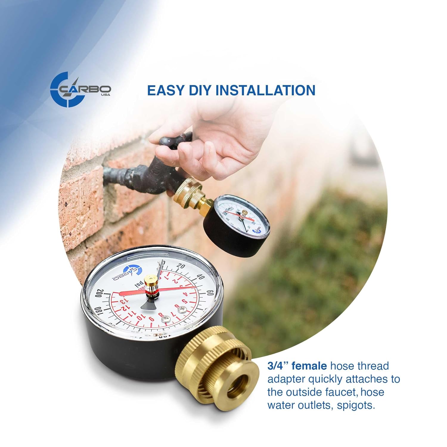 Universal 3/4″ Hose Thread Compatibility: Easily connects to garden hoses, faucets, spigots, or sprinklers with a standard 3/4″ female hose thread—no tools needed. Compact 2.5″ dial suits home plumbing, gardening, or RV camping.