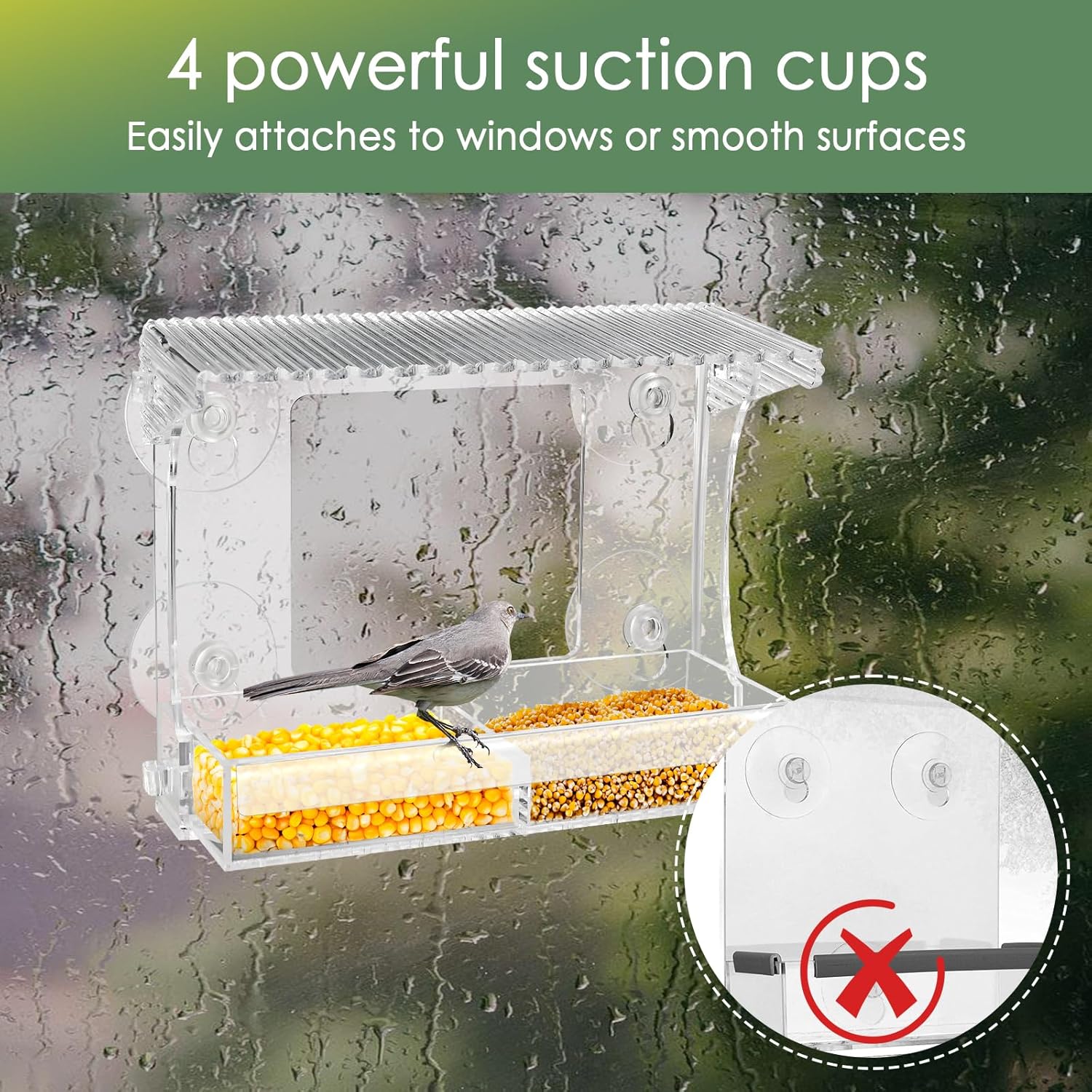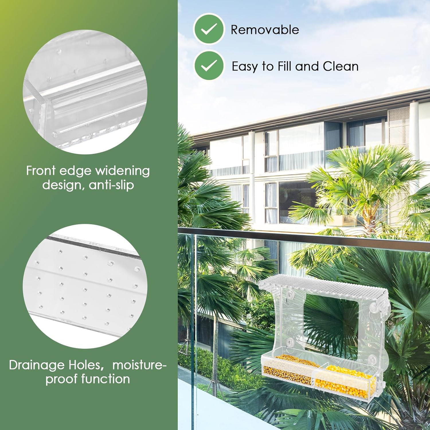 1. Get pleasure from pure bird-watching with our acrylic window feeder! Straightforward to fill & clear with a removable tray, measuring 18x15x6cm / 7.09×5.91×2.36 inches.