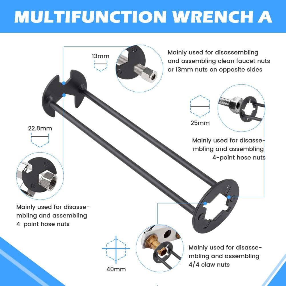 【7 IN 1】 Sort A + Sort B wrench with 7 sizes common underneath sink plumbers wrench. The revolutionary design permits for seamless disassembly and meeting of pipe nuts, minimizing potential injury to pipes and nuts.
