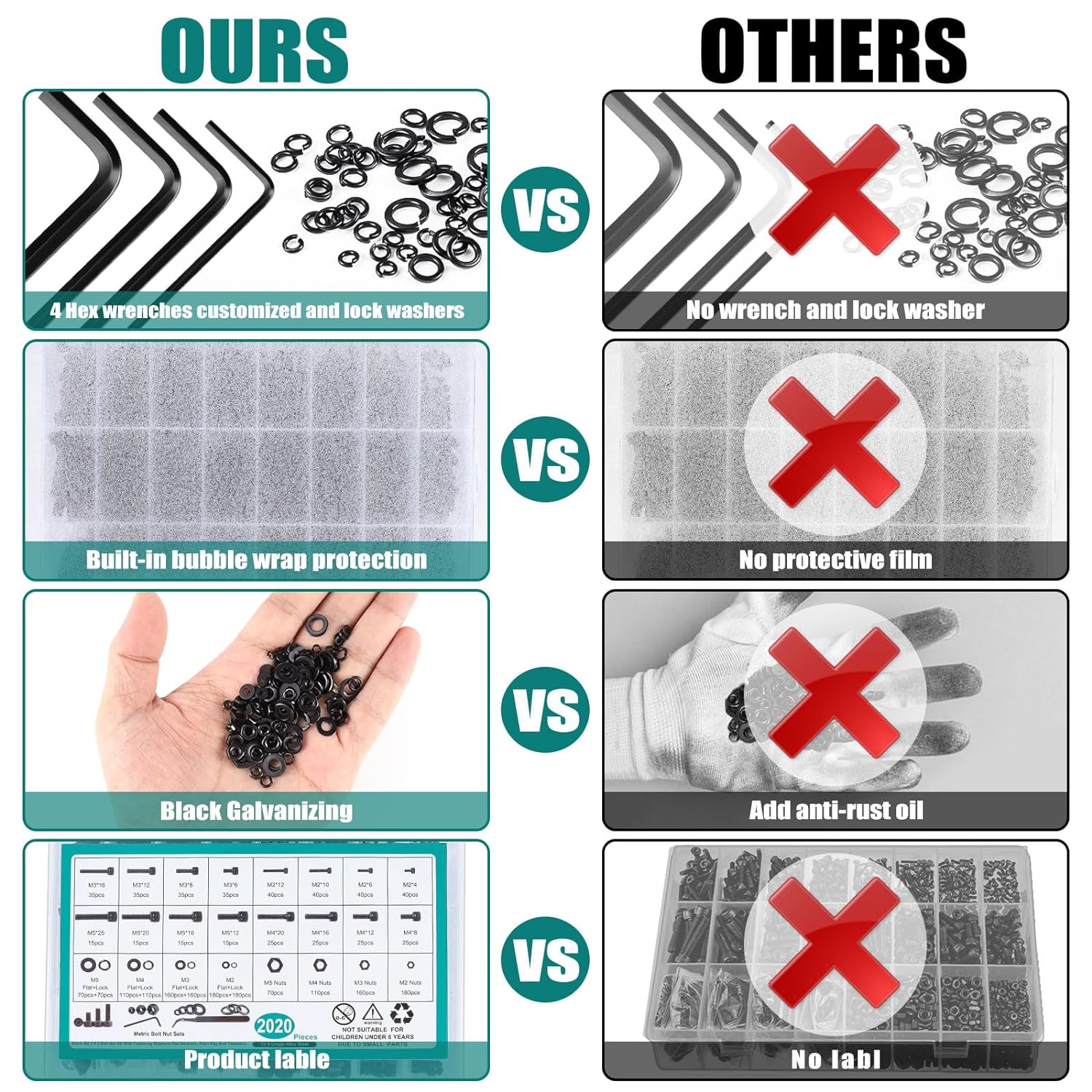 Bigger Amount :2020 pcs M2 M3 M4 M5 screws with nuts and washers mixture, sufficient for each day wants, 4 hex wrenches personalized for every dimension are offered within the package to make the screws simpler to make use of.