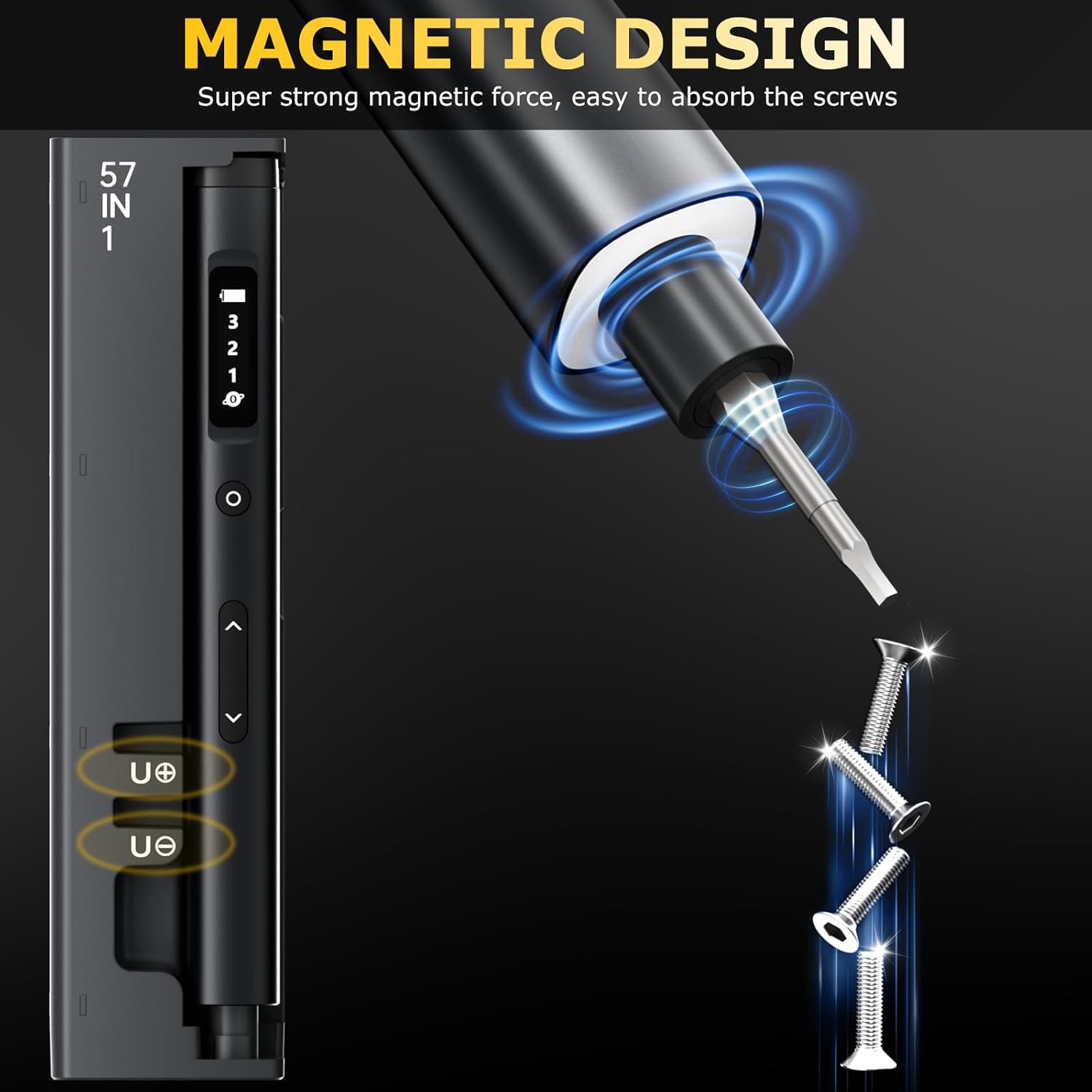 Complete 57-in-1 Equipment: This electrical screwdriver package consists of 57 precision instruments and equipment, akin to varied sizes of screwdriver heads, tweezers, and a steel crowbar, enabling customers to deal with a variety of restore duties. This screwdriver set is especially helpful for repairing digital units, watches, and cameras, permitting customers to simply swap out heads as wanted