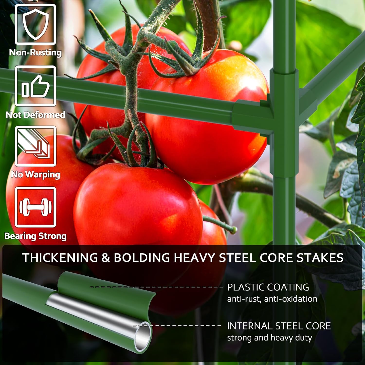 SPACIOUS SQUARE CAGES: Standing tall at 50 inches, gives ample rising area, promotes air circulation for wholesome plant progress, in comparison with triangular buildings, sq. tomato cage permits full publicity to daylight, maximizing the method of photosynthesis and leading to extra flavorful fruits. Additionally it gives higher stability and assist,stopping the trellis from collapsing below the load of the vegetation