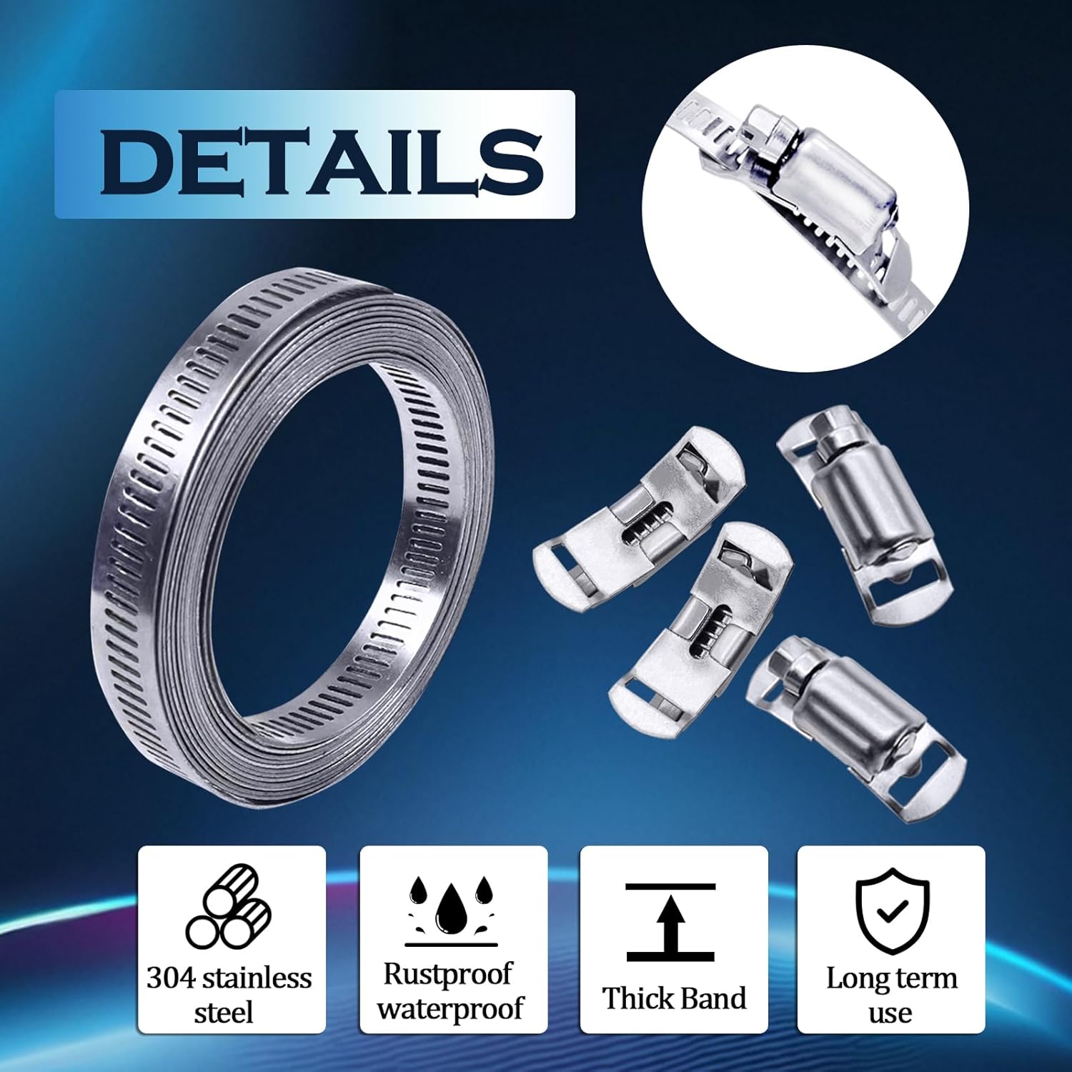 Bundle Consists of:12 Toes Steel Strap+8 PCS Stronger Fasteners.;The hose clamp equipment has sealing efficiency, and in addition helps to unravel the issues of liquefied gasoline leakage