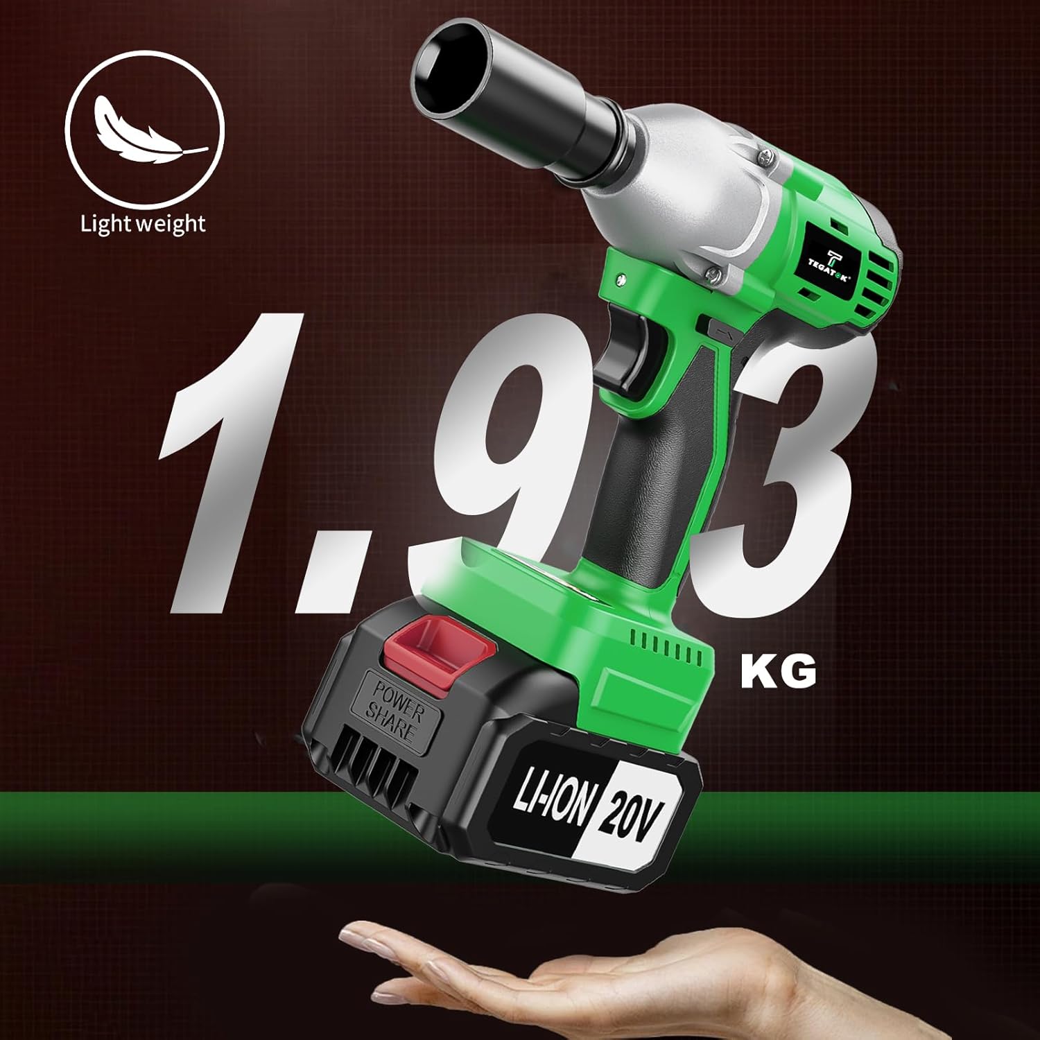 Cordless Convenience for Mobility: Say goodbye to tangled cords! This cordless impact wrench gives you complete freedom of movement. The built-in lithium battery provides long-lasting power for extended use, ensuring you can complete jobs without needing a power outlet nearby. It’s the perfect pistola de impacto 1/2 for those who want a reliable impact wrench 1/2 without being tethered to a wall.