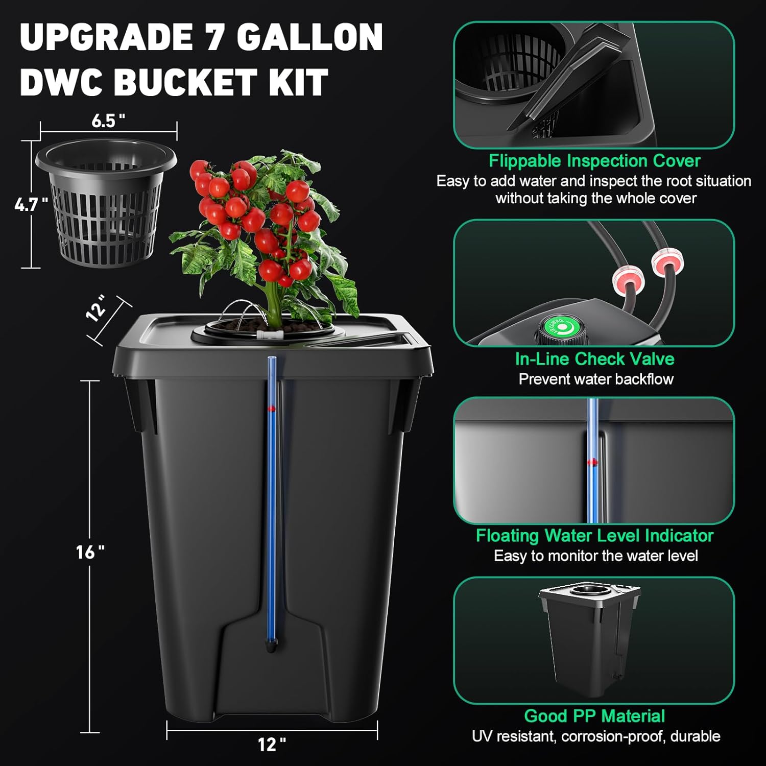 GROW FASTER, HARVEST MORE: Requiring no timers, plug the air pump, and the DWC system will run robotically, the 24/7 circulation and aeration encourage speedy root progress, save water and labor, and improve 30% yield
