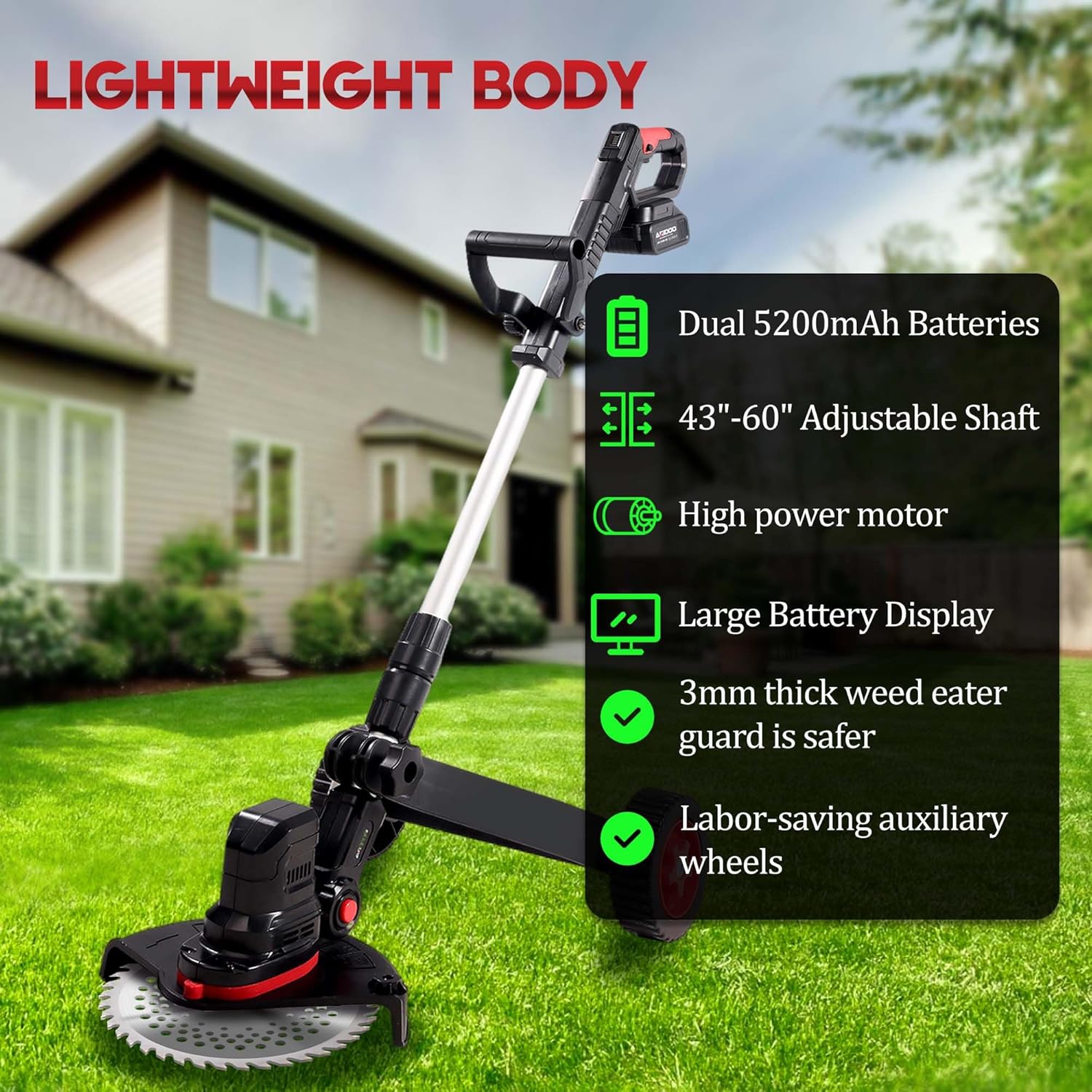 【Highly effective Energy System】:Electrical weed eater comes with two high-capacity 21V 5200mAh batteries, offering as much as 80–120 minutes of runtime. It’s powered by an 800W silicon carbide brushless motor, with a peak velocity of 20,000 RPM and a relentless velocity of 16,800 RPM. This motor gives higher torque and an extended service life than conventional pure copper motors. With this setup, you possibly can simply mow as much as 5,000 sq. ft of garden.