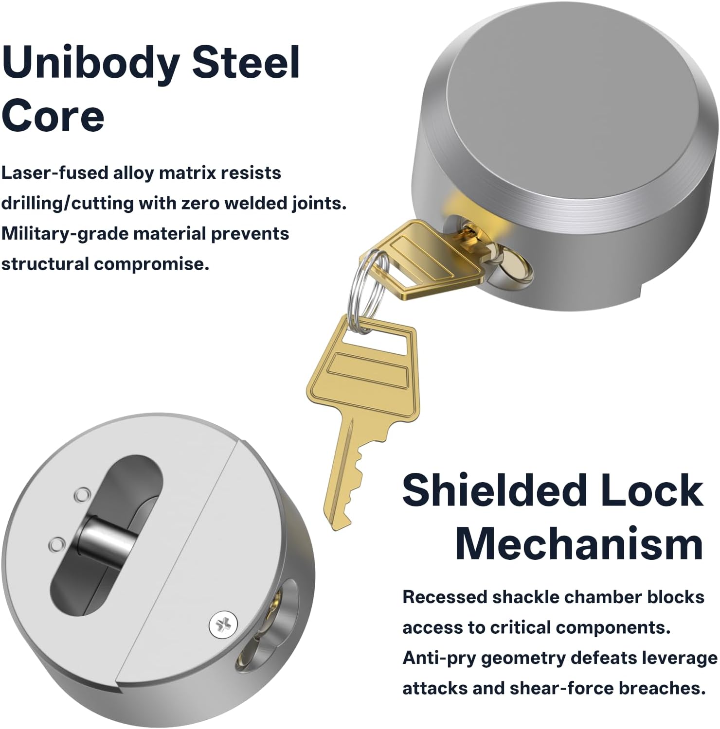Heavy Responsibility Anti-Theft Safety: Constructed with a 14mm thick hardened metal shackle and anti-drill boron alloy physique, this puck lock resists bolt cutters, saws, and tampering instruments. Trusted by truckers and companies for max theft deterrence.