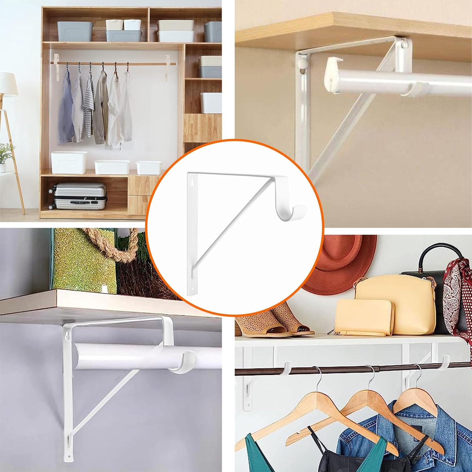 Traditional L-Formed Brackets – Our closet rod bracket is L-shaped with additional help bars. It helps to create extra storage or show room in tight house. The neat fashion is appropriate for all types of residence decor.