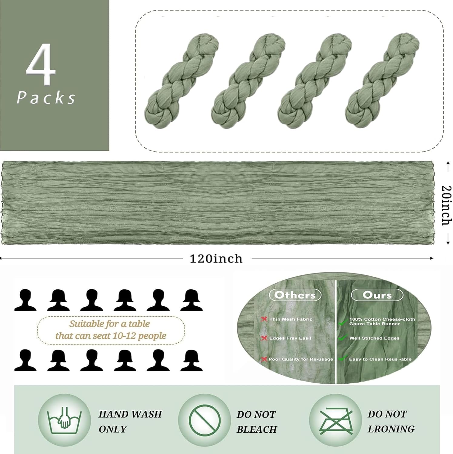 PACKAGE INCLUDE: 4 Piece 10ft size sage inexperienced cheesecloth desk runner, sufficient amount is appropriate for marriage ceremony banquets and varied events,The totally expanded dimension is 20″ huge and 120″ size.mild weight and simple to retailer. This gauze desk runner will be positioned on the desk or held on the ground completely and elegantly, which can add a romantic ambiance to your event