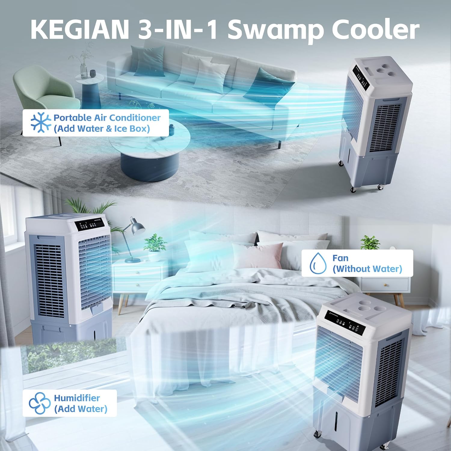 [Industrial-Grade Cooling Power] With an enormous 3900 CFM airflow and 34.4 ft/s wind pace, this beast covers as much as 960 sq. ft. in a single sweep. Its 120° oscillating head and triple cooling pads guarantee each nook stays refreshingly cool—excellent for garages, patios, or massive indoor areas.