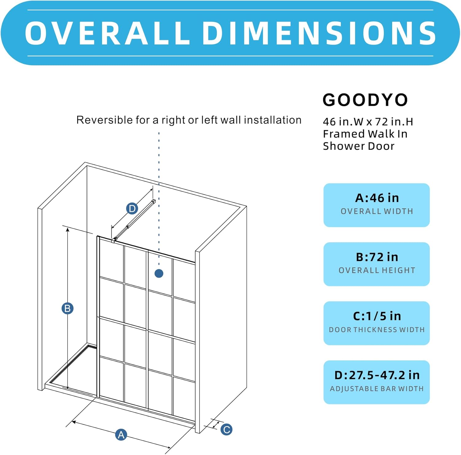 Premium Materials: This bathe door is constructed from 1/5” (5mm) thick tempered glass, which is proof against shattering, guaranteeing a protected showering expertise.