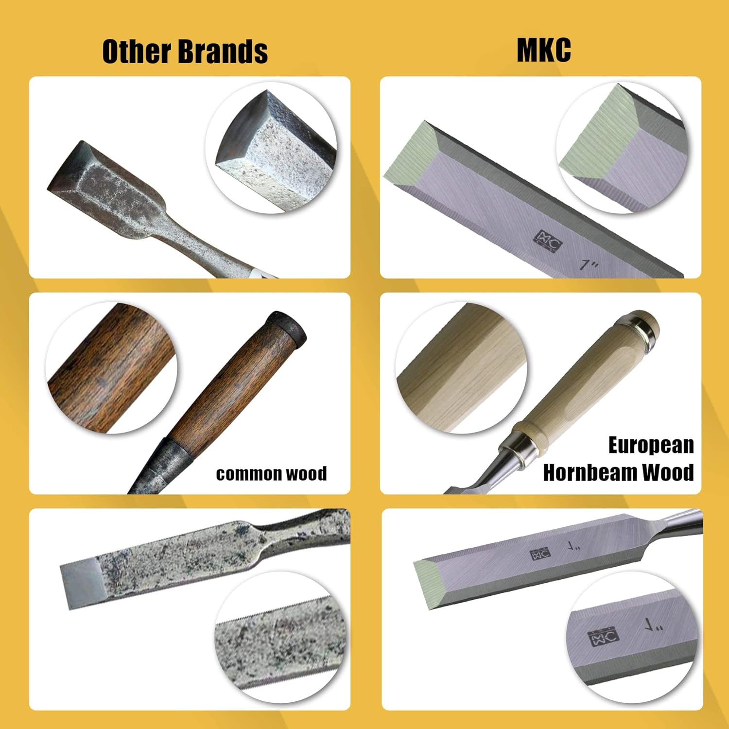 Skilled Woodworking Instruments: There are 6 completely different sizes of wooden chisels and one wood field within the set. 1/4 inch, 3/8 inch,1/2 inch, 5/8 inch 3/4 inch, 1 inch.