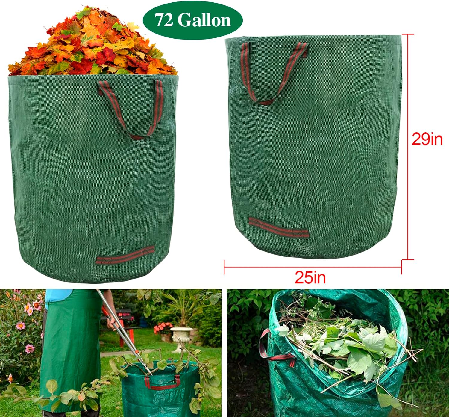 Use for accumulating Garden Particles Yard Leaf Trash, Good for backyard leaf bag,backyard waste baggage,grass clippings baggage,garden particles baggage,backyard particles bag,Yard waste baggage. Additionally utilized in Garden grass clippings bag,Weeds,useless flowers baggage,Laundry bag,Storage bag,Transferring home baggage,Tenting waste bag,Campsite trash baggage,Yard waste bag,garden particles bag,yard clippings baggage.