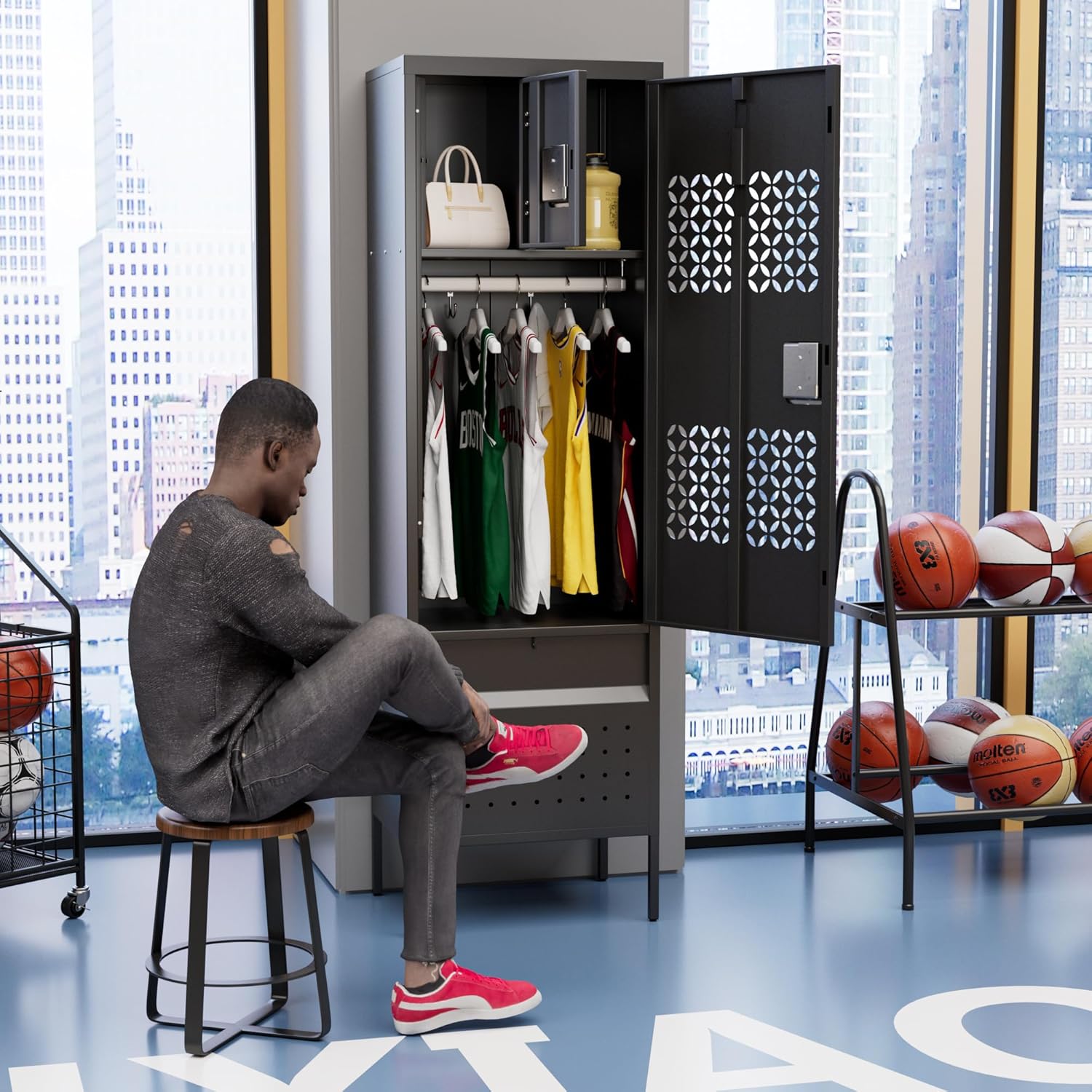 Preserve Air Circulation:Perforated metal panels stop moisture buildup, ultimate for storing damp fitness center garments or out of doors tools.Beneficiant inside dimensions match cumbersome objects like backpacks, helmets, or cleansing provides.