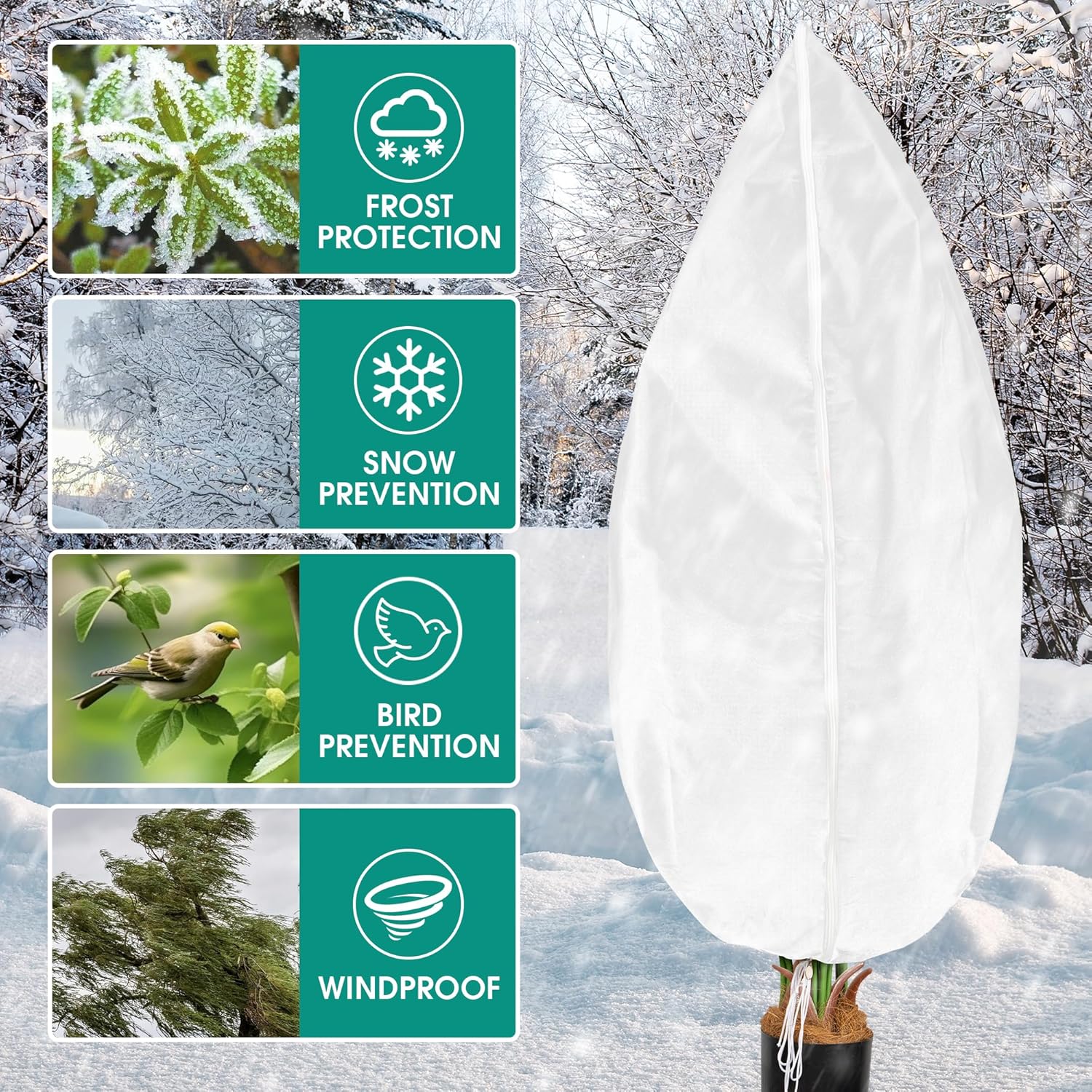 This outside plant cowl contains a facet zipper and an additional drawstring closure on the backside, making it straightforward to placed on and take off. It will possibly defend timber, shrubs, and different giant vegetation from extreme chilly and powerful winds. Our plant cowl retains your vegetation vibrant and wholesome all through the winter.