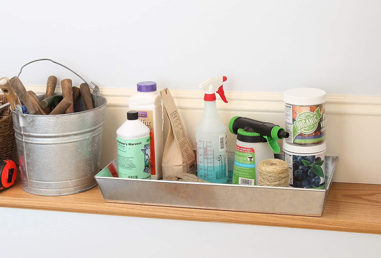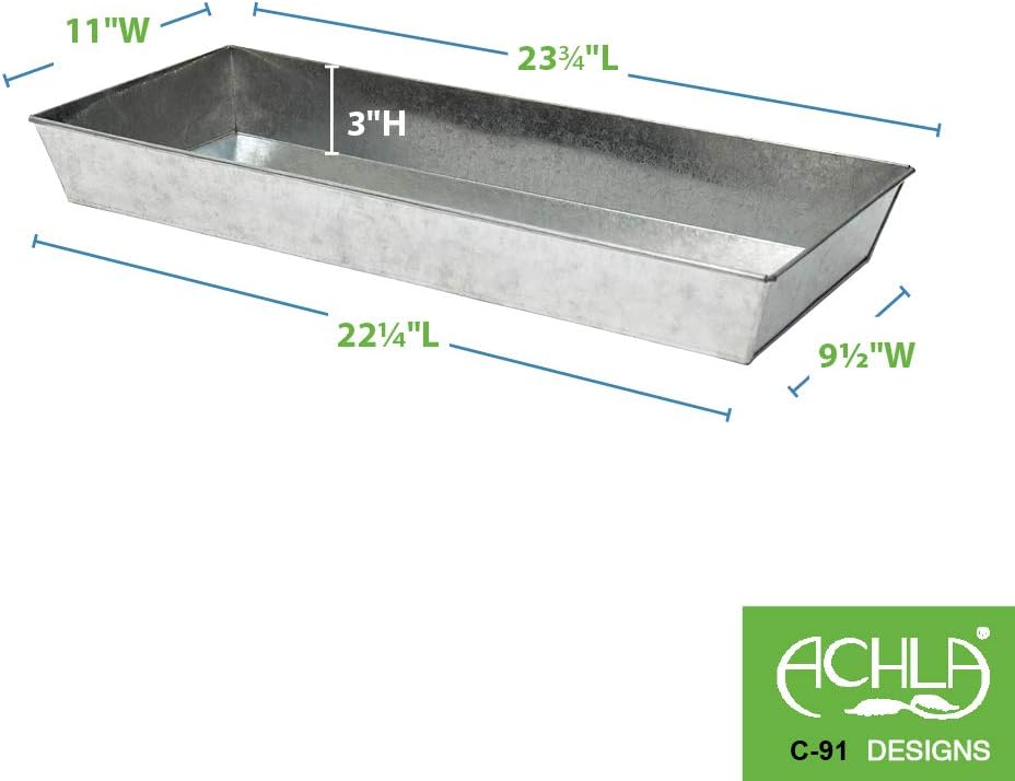 GALVANIZED STEEL: Shallow steel plant trays with tapered sides, in two sizes, Small- 19 ¾”L x 9 ½”W x 3”H and Giant- 24”L x 11”W x 3”H