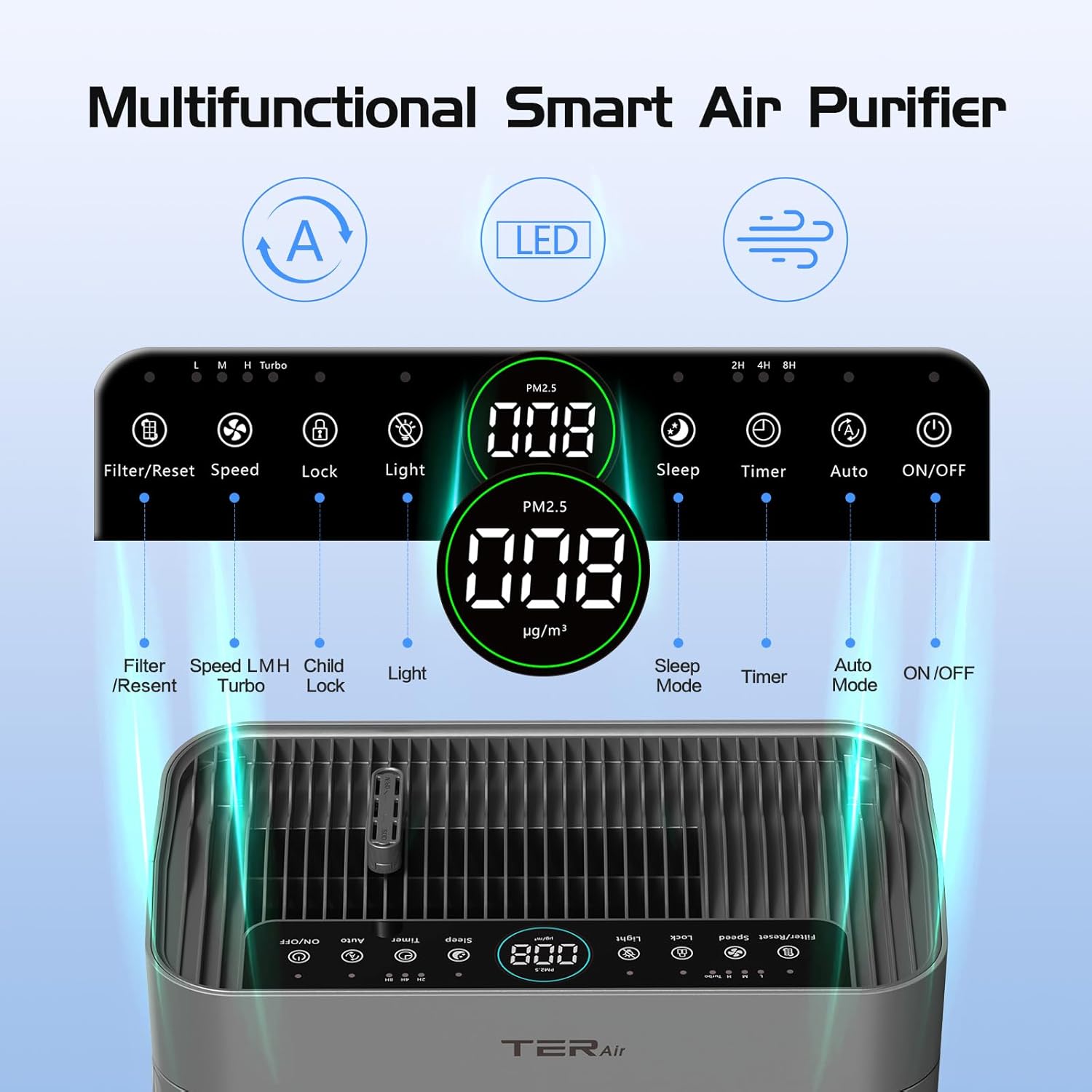【Highly effective Protection for Giant Rooms】This hepa air air purifier for residence massive room encompasses a excessive CADR of 249 CFM (500 m³/h), successfully cleansing the air in areas as much as 3,000 ft² as soon as per hour. Best for giant bedrooms, dwelling rooms, places of work, or wherever you want highly effective air purifiers for residence massive room efficiency.