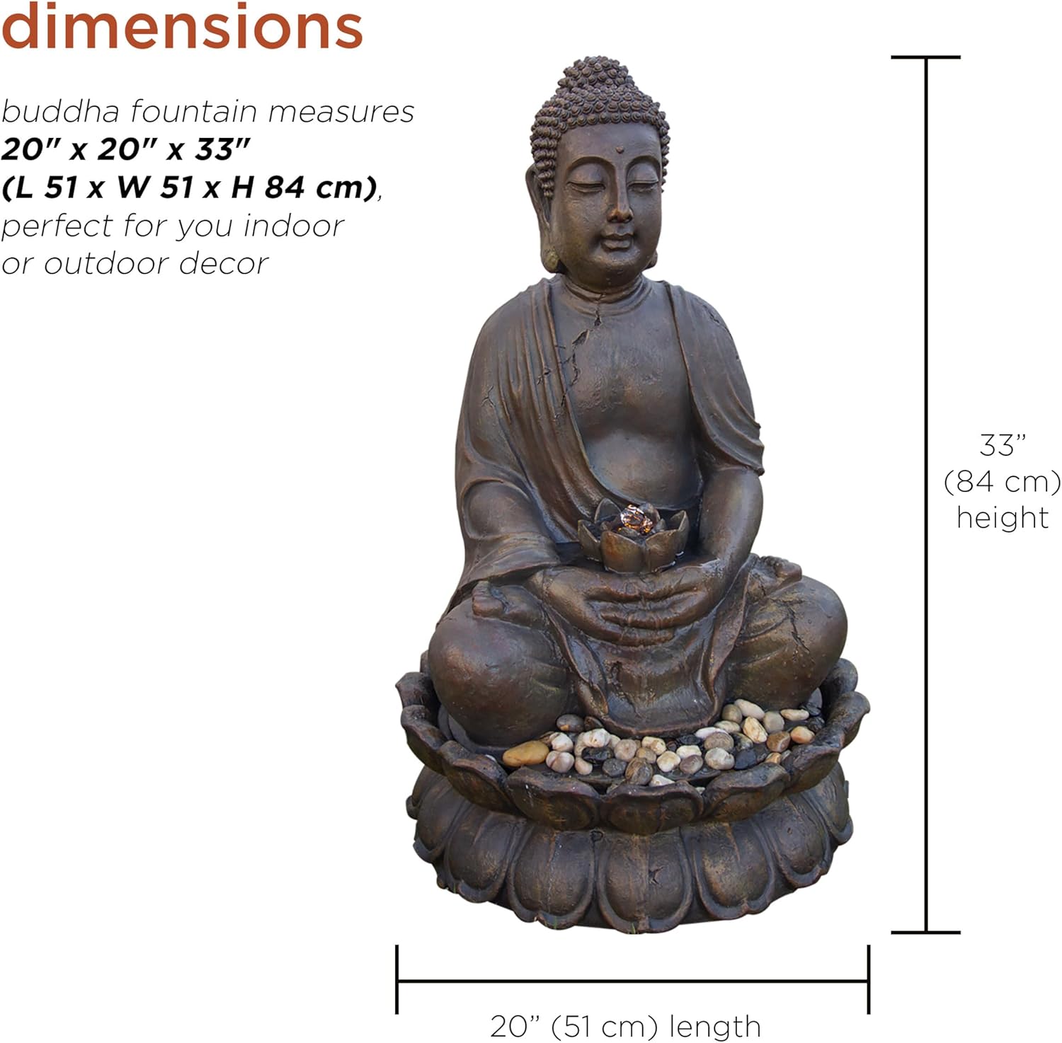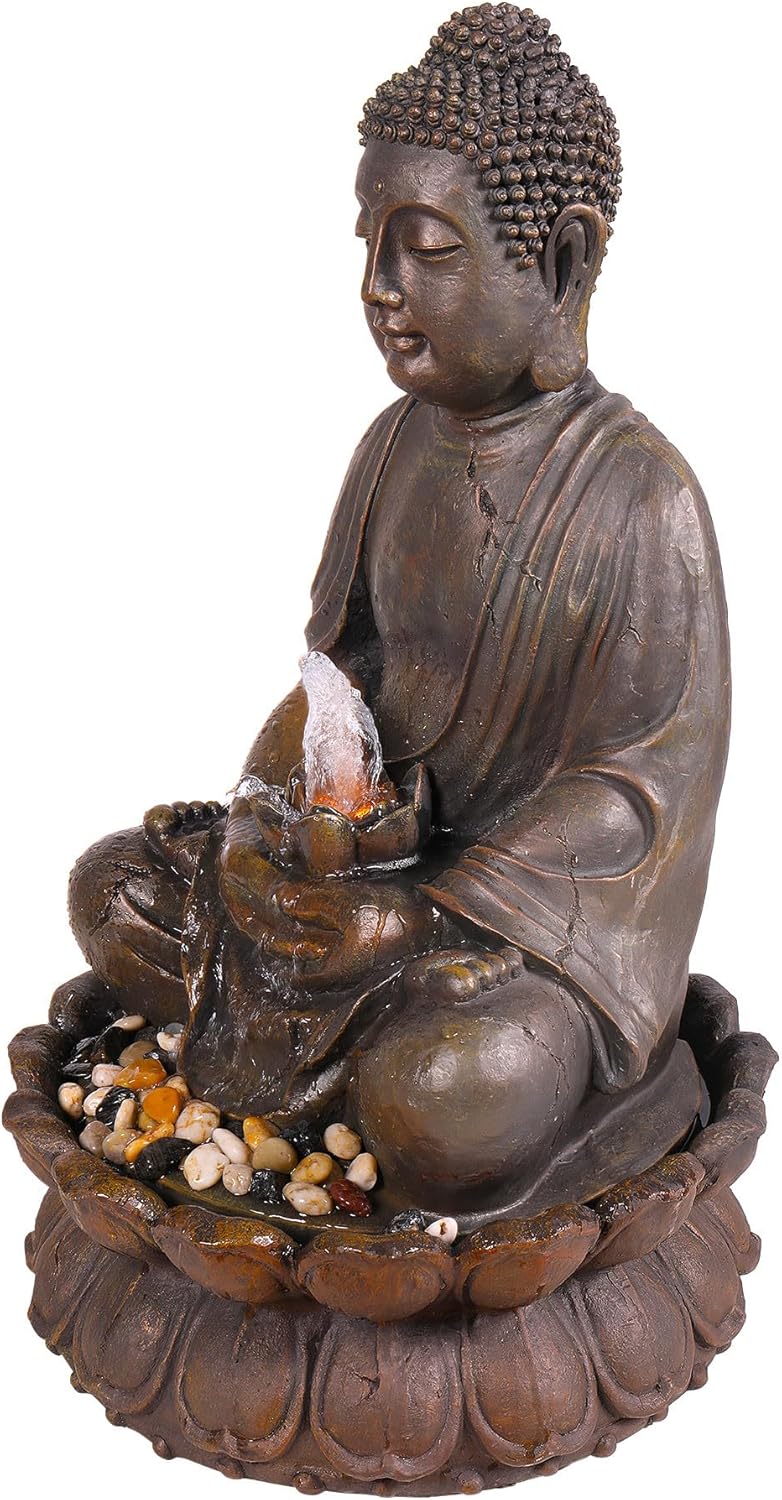 BUDDHA FOUNTAIN STATUE: Calming Buddha seems nice in your yard or backyard, or positioned in your deck or residence workplace décor, whereas inside pump with LED lights retains the water flowing – simply plug it in!