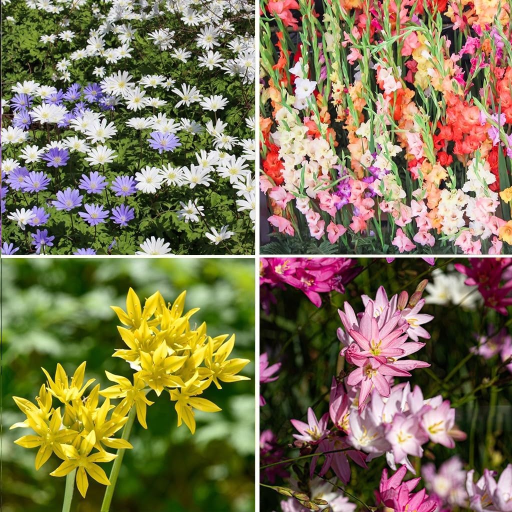 Full Spring & Summer season 100 Bulbs Colourful Blooming Flower Backyard Consists of : 30 Anemone Blanda 20 Gladiolus Blended 20 Allium Moly 30 Ixia Blended