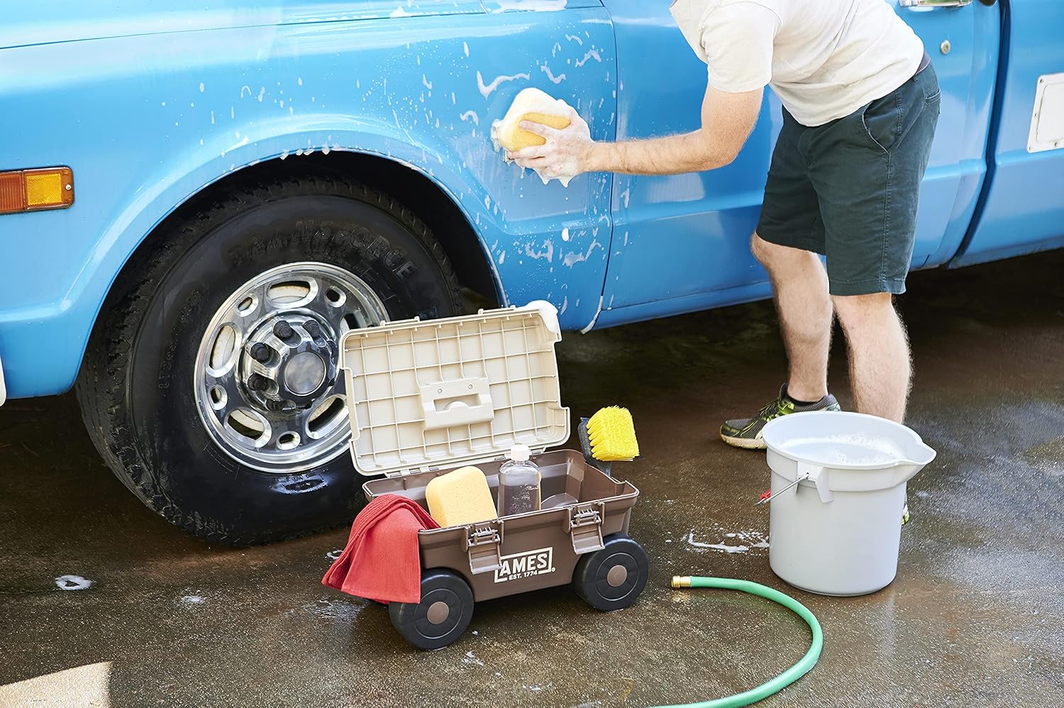 Regardless of the undertaking, the AMES Rolling Garden & Backyard Storage Cart retains your instruments shut handy. With its sturdy poly development, 5.5-inch diameter wheels, and built-in deal with, this space-saving, compact, multi-purpose caddy can each retailer and transport instruments, {hardware}, backyard shovels and spades, cleansing provides, auto detailing brushes and sponges, towels, and extra. Plus, the lid snaps closed to safe gadgets when not in use and doubles as a handy, sturdy seat.