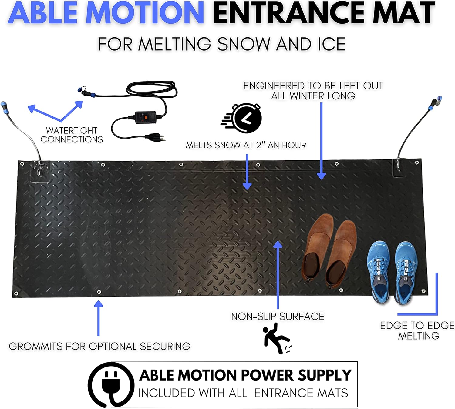 The Ready Movement Snow and Ice Melting Mat Package (AMM-LHM) Heated Non-Slip Walkway Heated Mat 20” x 60” Snow-Melting Mat is ideal for out of doors sidewalks, patios, backyard paths, & workplace walkways, and has a 110 volt energy provide.
