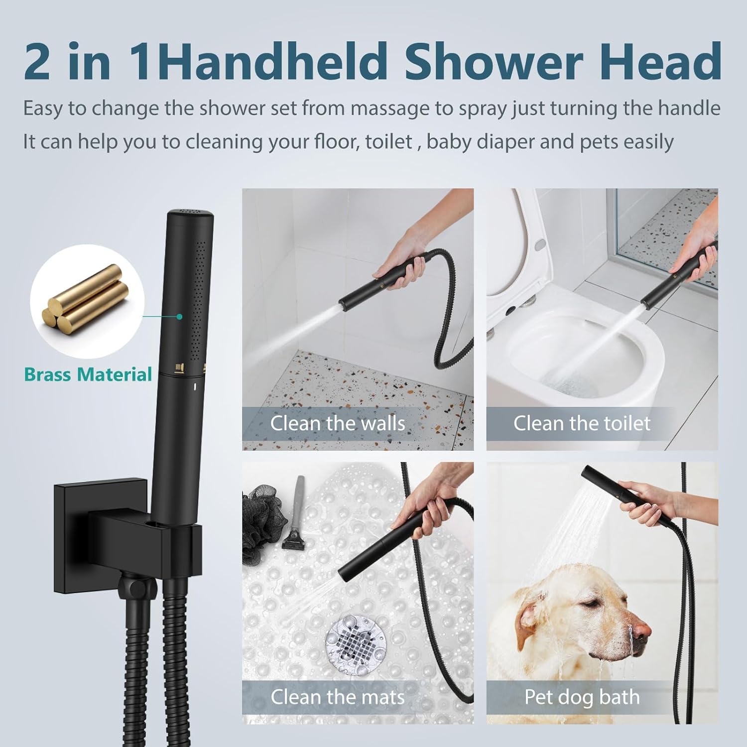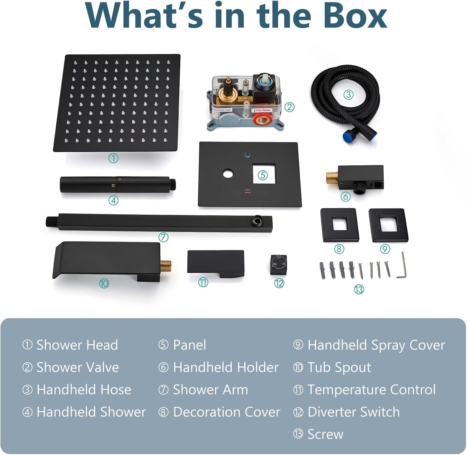 【What’s Included】: This rain bathe head set contains 10” sq. fastened bathe head ,Twin bathe wand, bathe arm, 59 inch bathe hose, bathe holder ,tub spout and rough-in valve. Wall Mounted Tough-in Valve set up sort. Include clear instruction.