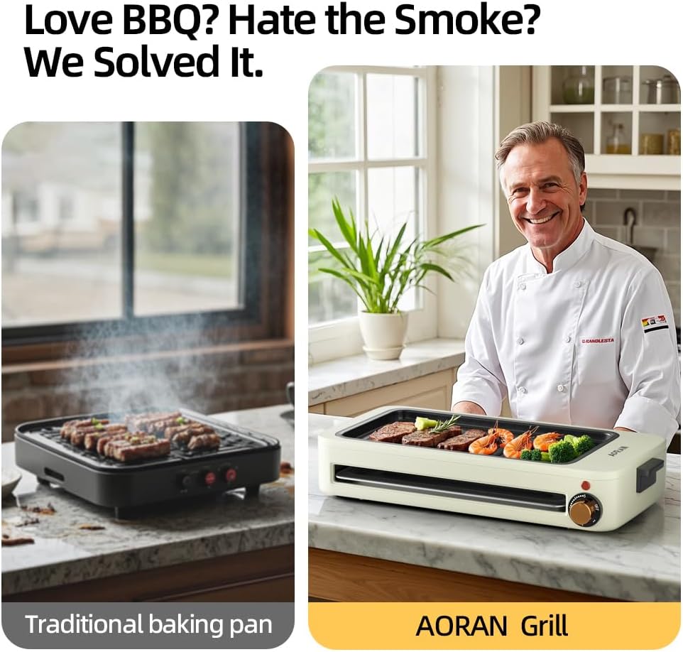 🤣 Smoke-Free Indoor Grilling – Superior airflow design reduces smoke by 80%, preserving your kitchen air clear and comfy.