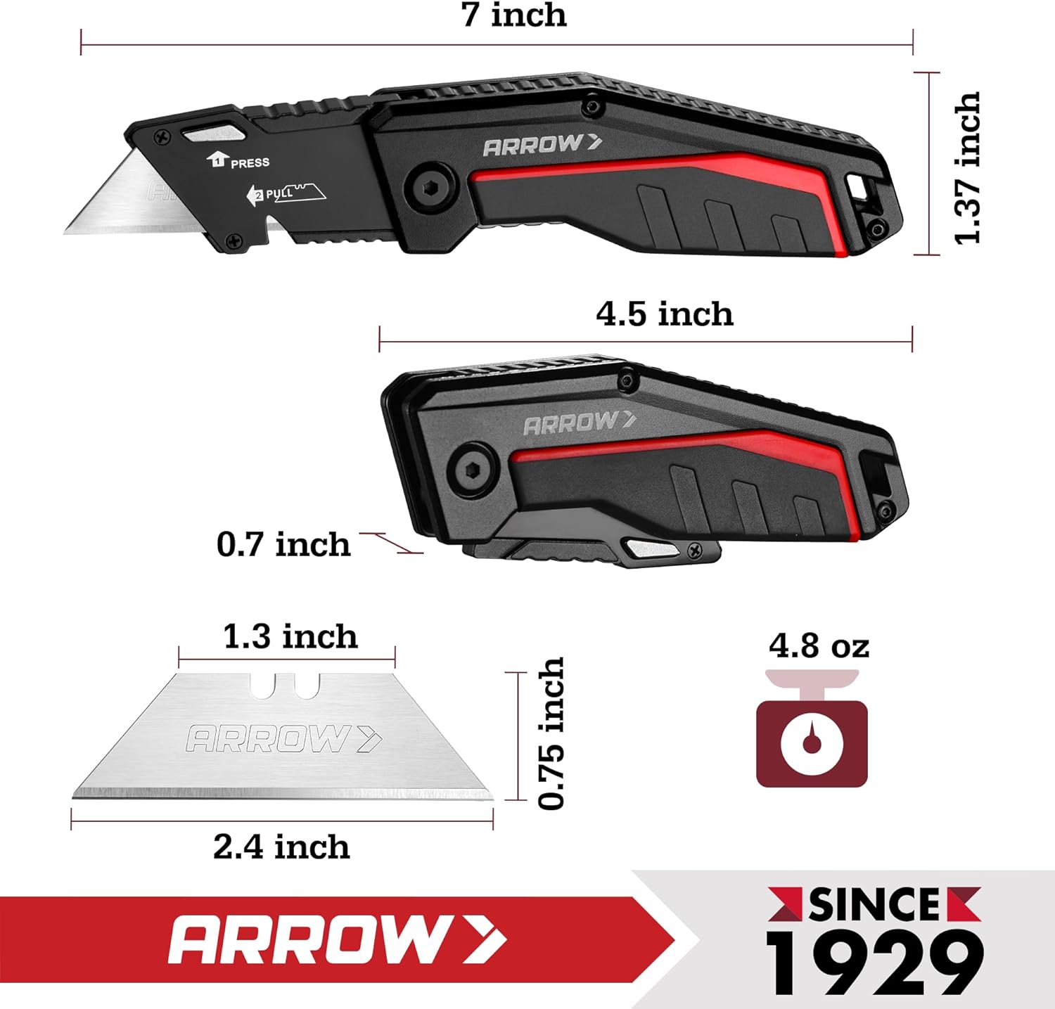 Heavy-Obligation Folding Knife: The ARROW Folding Utility Knife contains a sturdy, rust-resistant aluminum alloy physique, guaranteeing long-lasting efficiency and portability. Its hand-friendly physique and ergonomic TPR & ABS non-slip deal with design improve your person expertise.