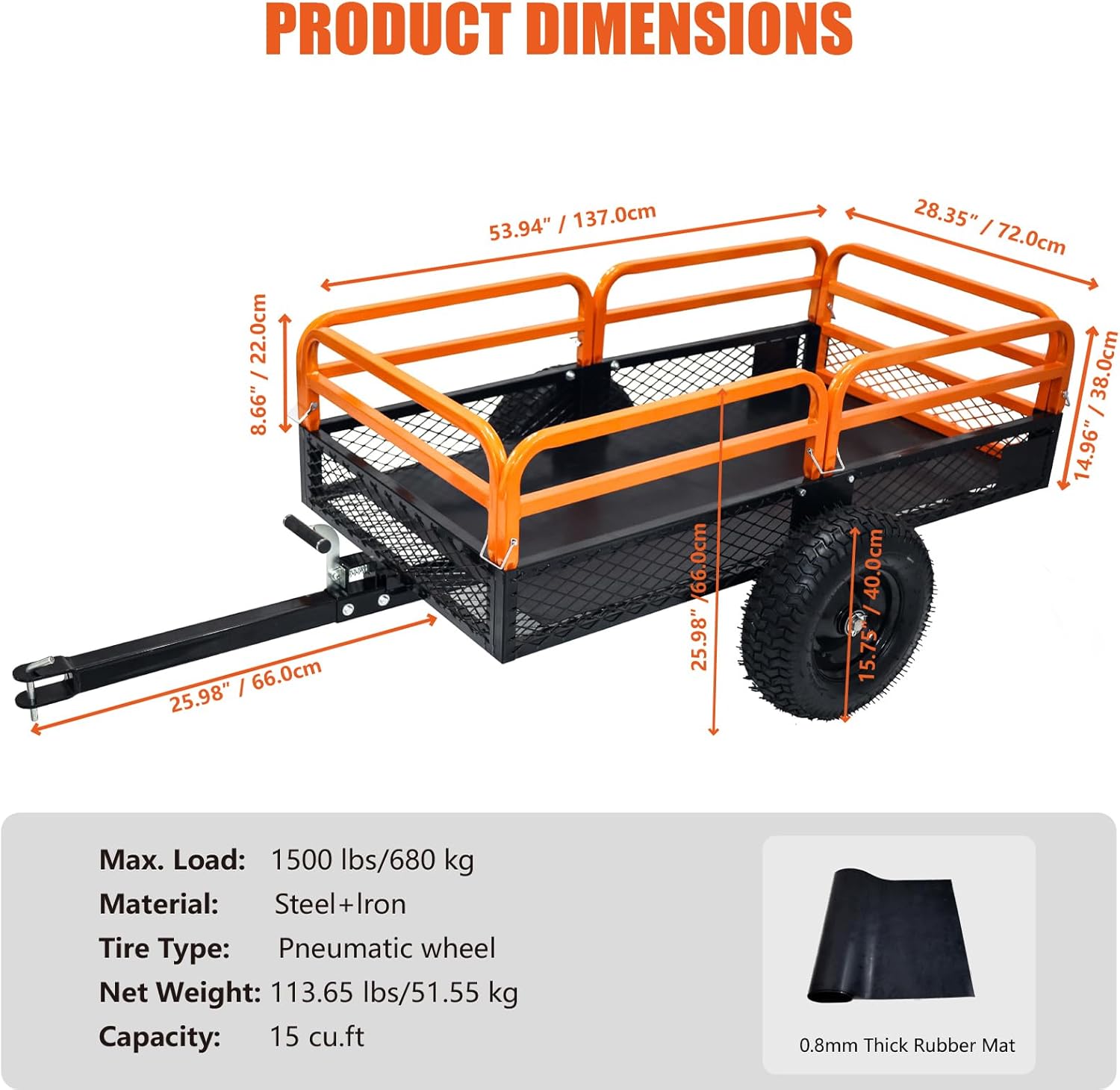 Common Hitch: Our utility trailer is supplied with a common hitch that seamlessly connects to tractors, lawnmowers, ATVs, UTVs, and extra. Get pleasure from easy, easy hauling—your excellent associate for tackling any yard work with ease.
