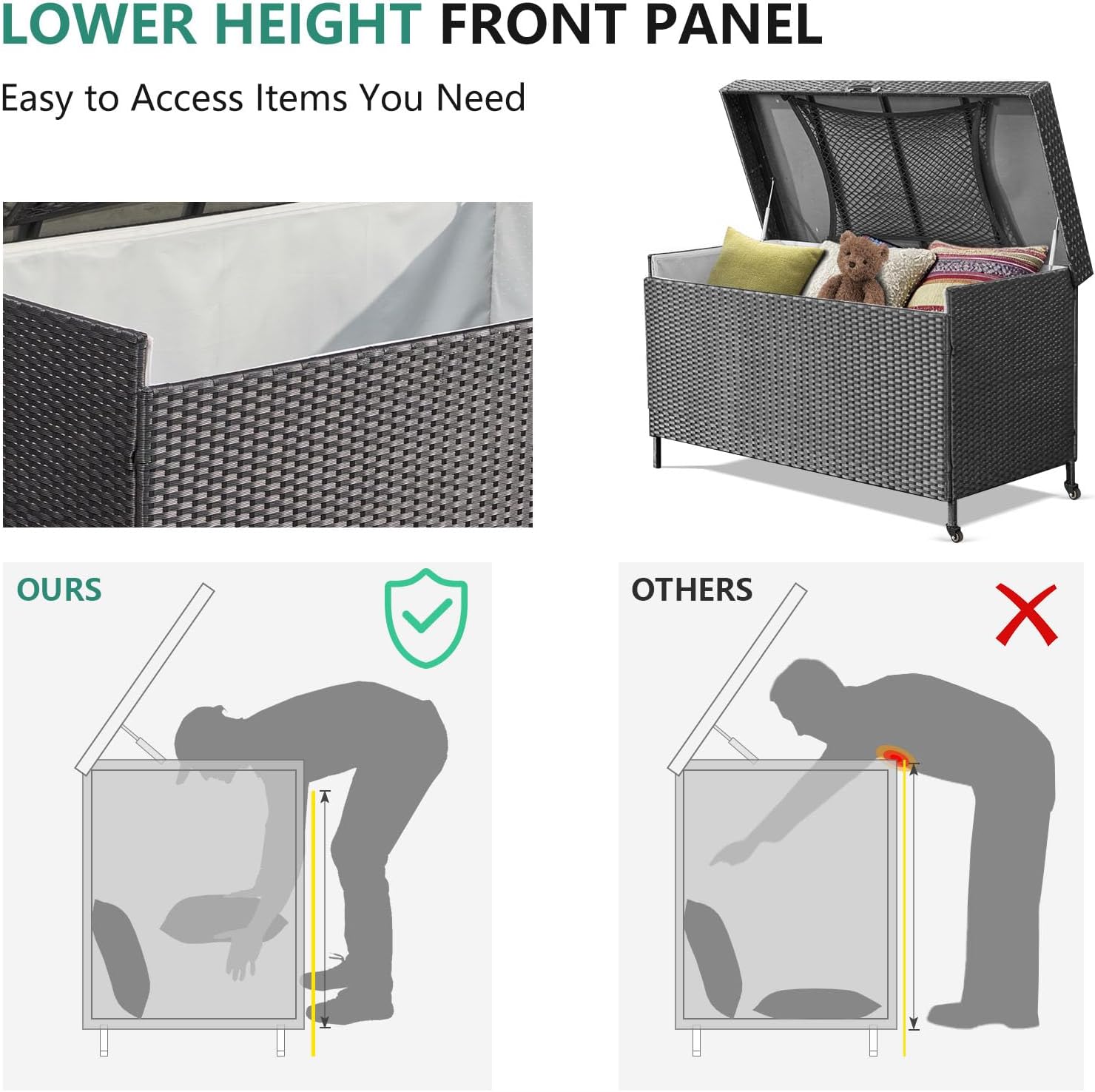 Handcrafted Wicker Weaving: Our waterproof 240 gallon deck field is constructed from a collection of sun- and fade-resistant polyethylene rattan, these bins can face up to all climate circumstances. To lengthen the lifetime of your rattan storage field, we suggest that you just maintain your storage field indoors when it’s raining closely