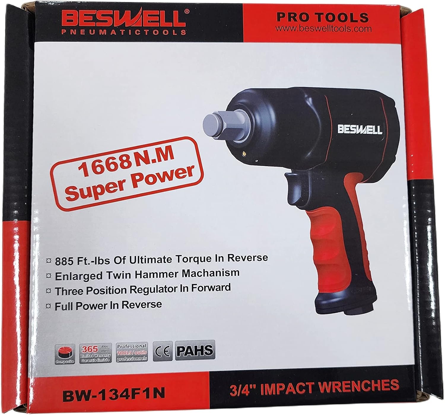 The BESWELL BW-134F1N 3/4-Inch Drive Mini Air Affect Wrench with max loosen torque of 1230 ft.lbs / 1668 N.M,twin hammer influence mechanism,mild weight composite housing is highly effective and excessive dependable and ensures environment friendly bolting and unbolting when altering wheels / tires on mild / medium automobiles.