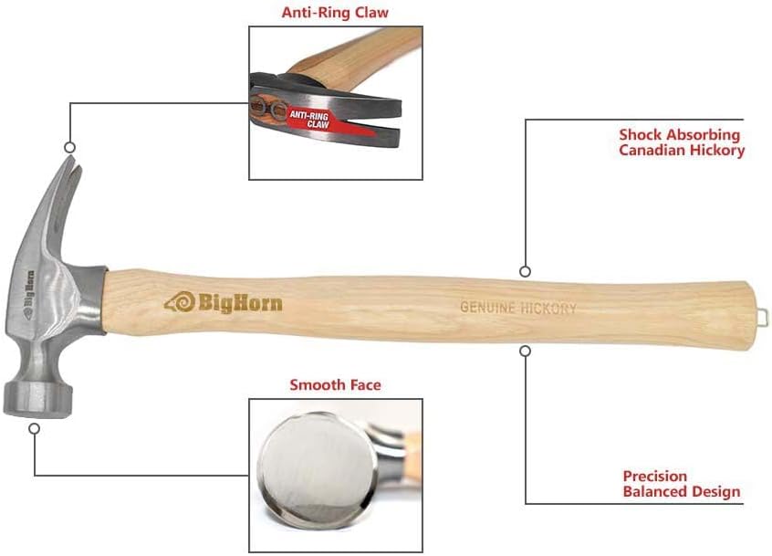 The Massive Horn 10 oz Claw Hammer with Straight Deal with was manufactured with a solid metal head for power and sturdiness. Outfitted with a curved claw and heat-treated easy face placing floor, the best resolution for trim, carpentry, woodworking, framing, different ending work, and a wide range of different functions. This claw hammer includes a basic 100% Canadian Hickory wooden deal with for a robust and comfy grip that delivers a robust and environment friendly blow.