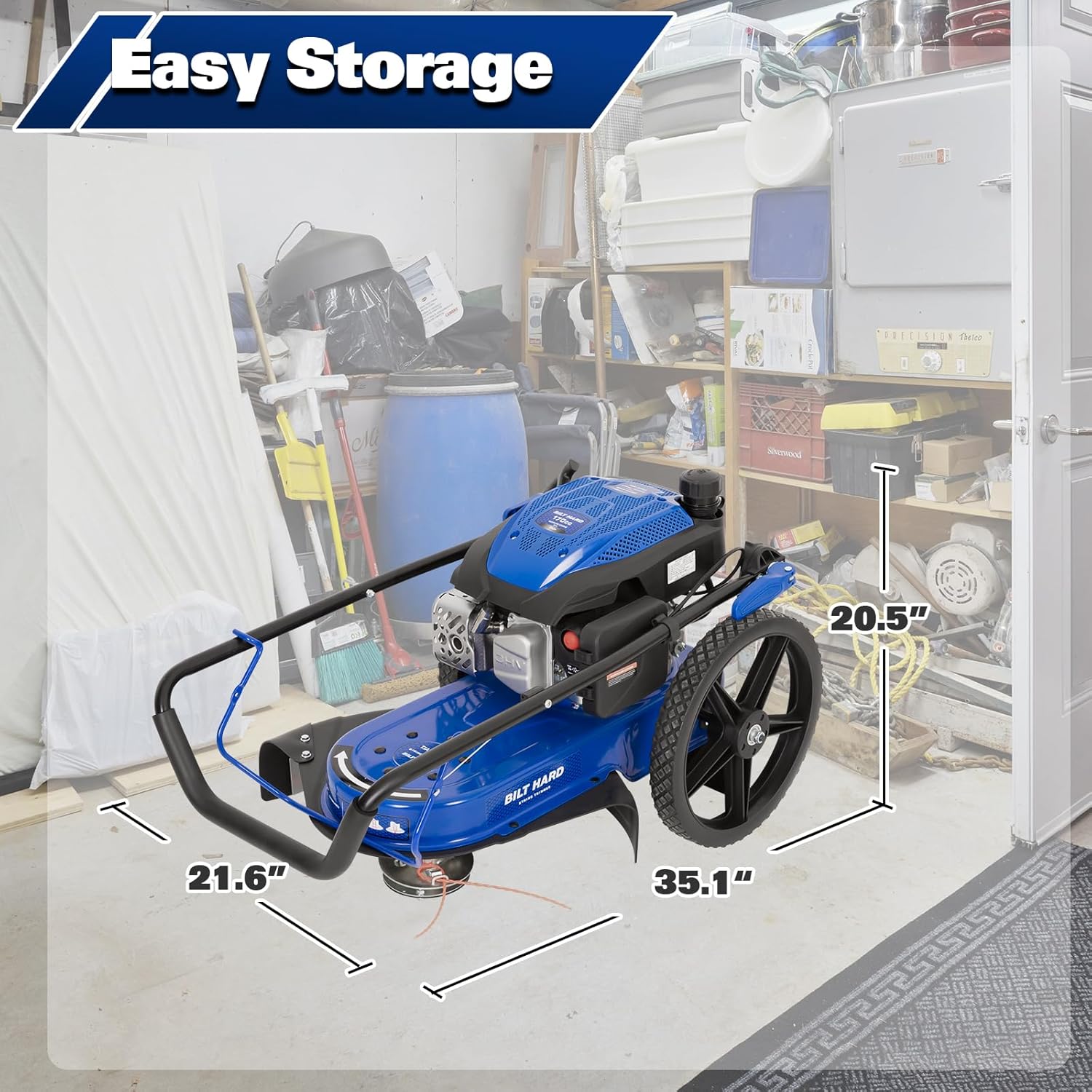 EASY MANEUVERING: Outfitted with 14-inch never-flat wheels, this gas-powered string trimmer can sort out all terrains and go wherever you want it to. The foldable ergonomic deal with gives an improved grip and permits for compact storage.