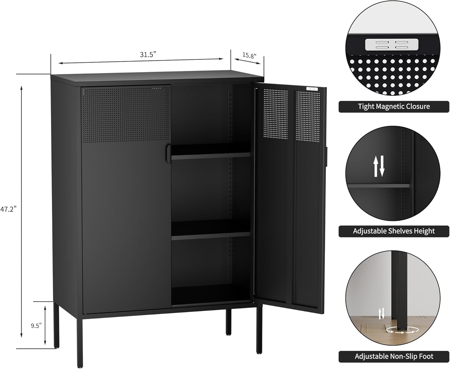 Distinctive Designs: the low cupboard is designed with air vent holes for correct air flow, adjustable non-slip toes to adapting to uneven ground and magnets closures on the highest of the doorways to ensure the doorways might be closed tightly every time