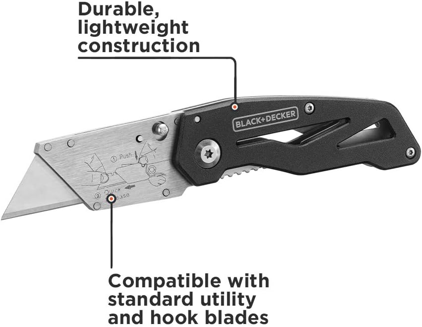 This 2-pack of BLACK+DECKER Folding Utility Knives is a superb set to have readily available to chop on a regular basis objects across the residence or on the go because of their compact dimension and handy belt clip. Open and shut the knife simply with one hand leaving your different hand free. These knives can lower all the things from packaging (together with corrugate, straps, tape, plastic, and cord) all the best way as much as extra superior development slicing (drywall, roofing paper and shingles, shaving wooden, panorama cloth, and extra). When the job is completed, fold the knives to retailer them compactly in your kitchen junk drawer, storage instrument bag or another spot the place you may hold them helpful for the subsequent activity.