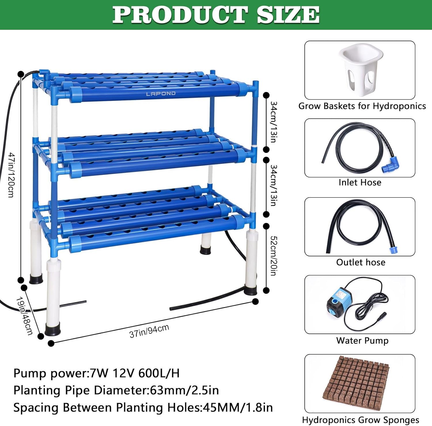 Broadly Use: Provides 108 websites in 3 layers with a 2.5″ tube diameter;This hydroponic gardening system is produced from high-quality food-grade PVC pipes, that are thickened and wear-resistant.Nice for leafy greens equivalent to lettuce, rape, celery, beets, bell peppers, garlic seedlings, canola, and extra.Excellent for gardens, balconies, college and different indoor and outoors