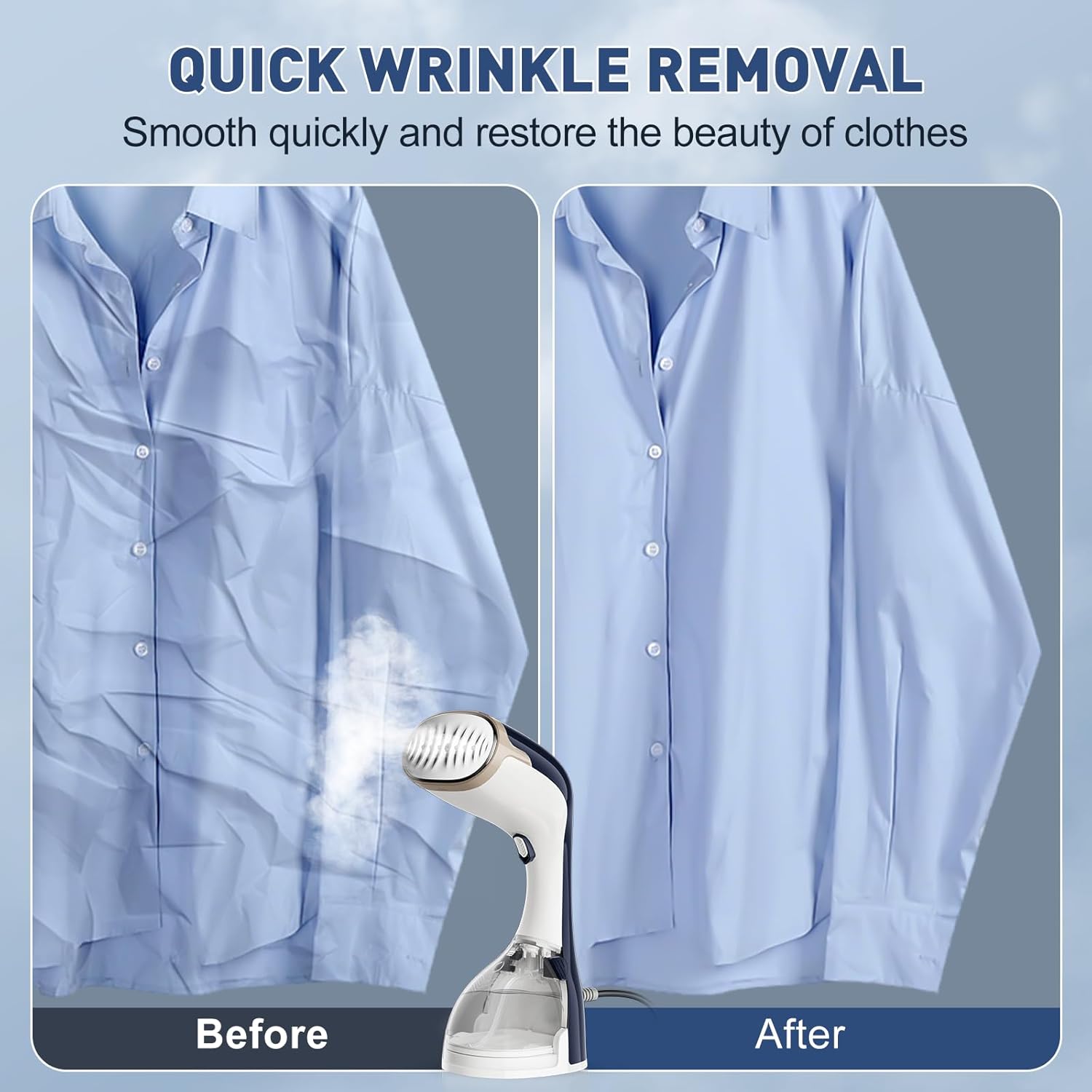 👖【LEAK-PROOF DESIGN & EASY TO USE】Clothes steamer can help vertical steam and horizontal ironing of every kind of materials with out leaking and overflowing water, secure steam ironing. Steamer produces light, fixed steam and incorporates a steam energy-saving pause perform button that makes it simple to regulate the iron place at any time. 5.9ft lengthy energy wire offers you sufficient room to maneuver round whereas garment steamer with out having to be restricted by distance
