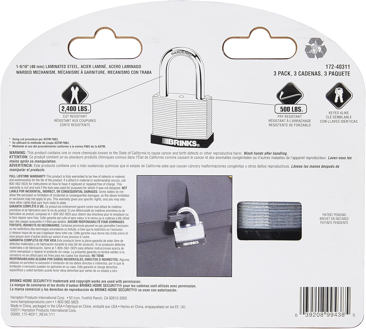 FEATURES: Brink’s Laminated Metal Padlock has a 40mm physique with chrome plated, hardened metal shackle for reduce resistance.
