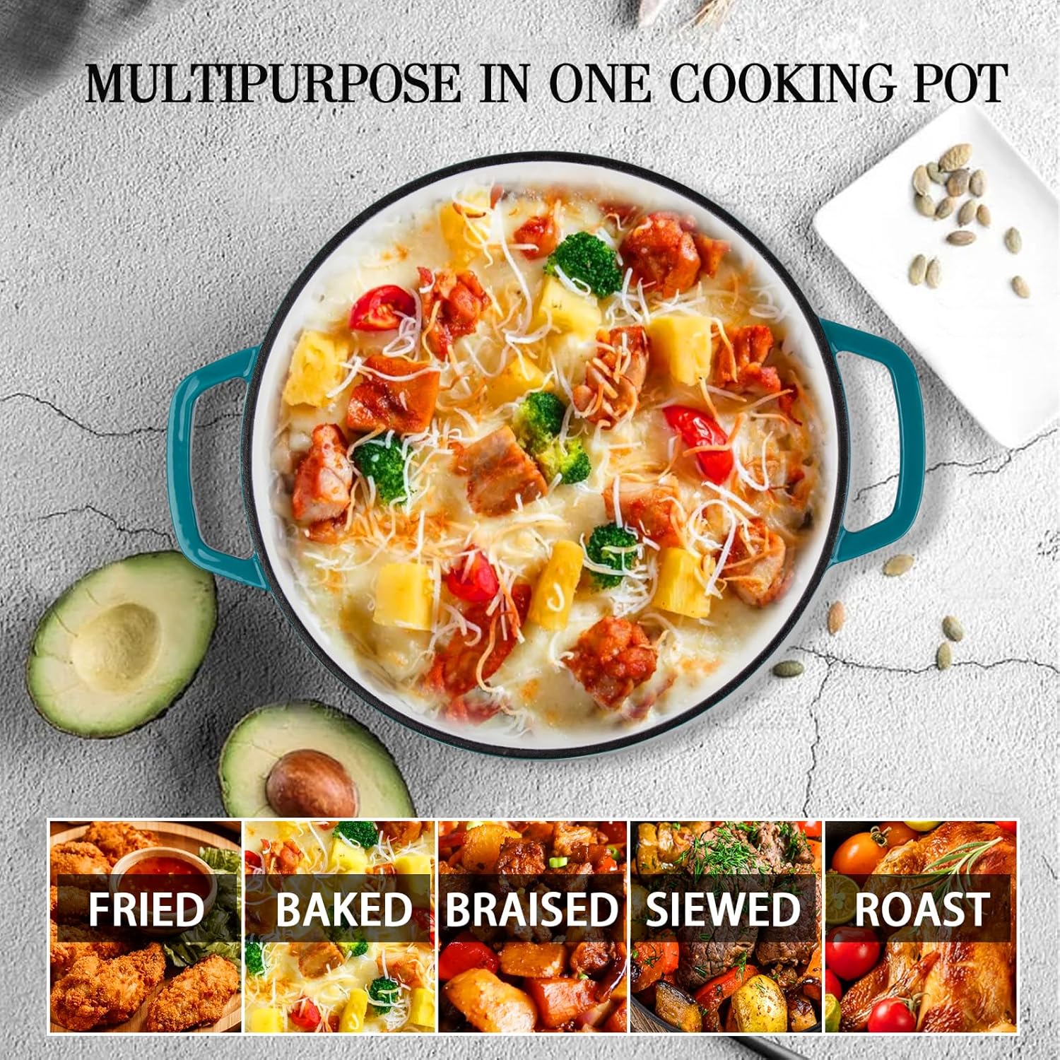 Forged iron cookware distributes and retains hea evenly. been used for hundreds of years t slow-cook issues like soups,stews, sauces,breads,and extra.