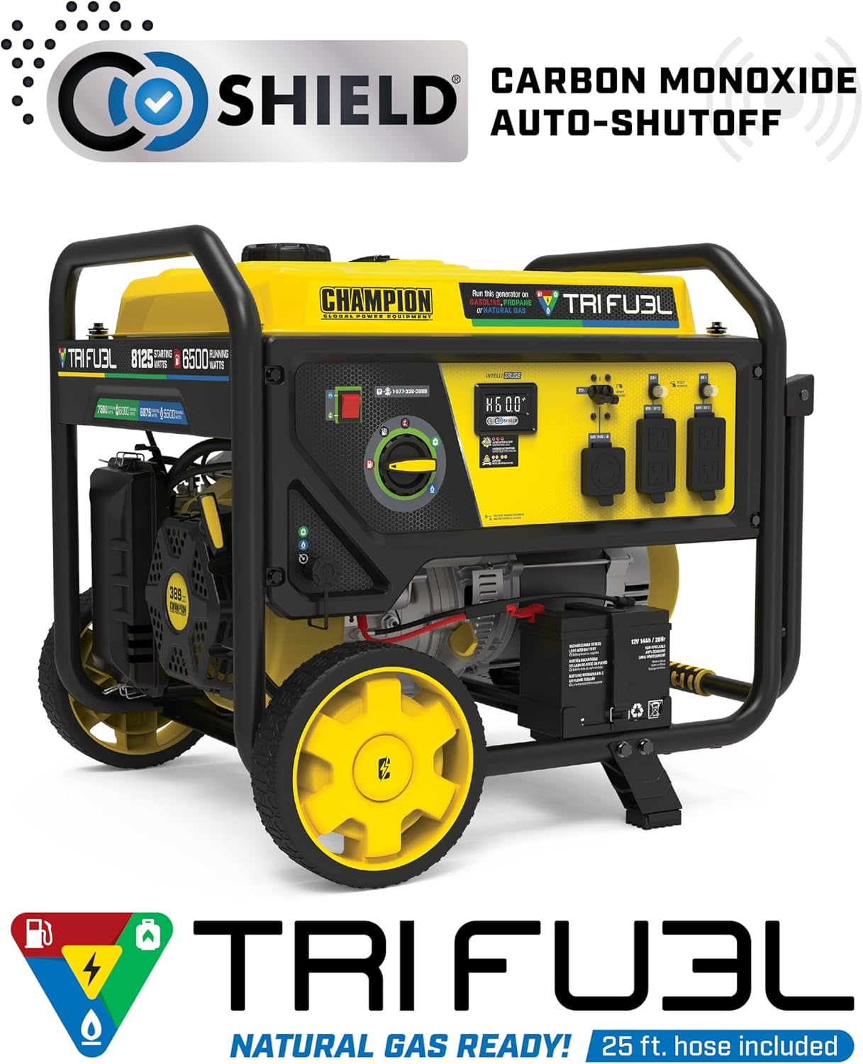Your 6500-watt transportable generator operates on pure fuel, propane, or gasoline, plus pure fuel and propane hoses are included so the unit is able to run on any gasoline proper out of the field