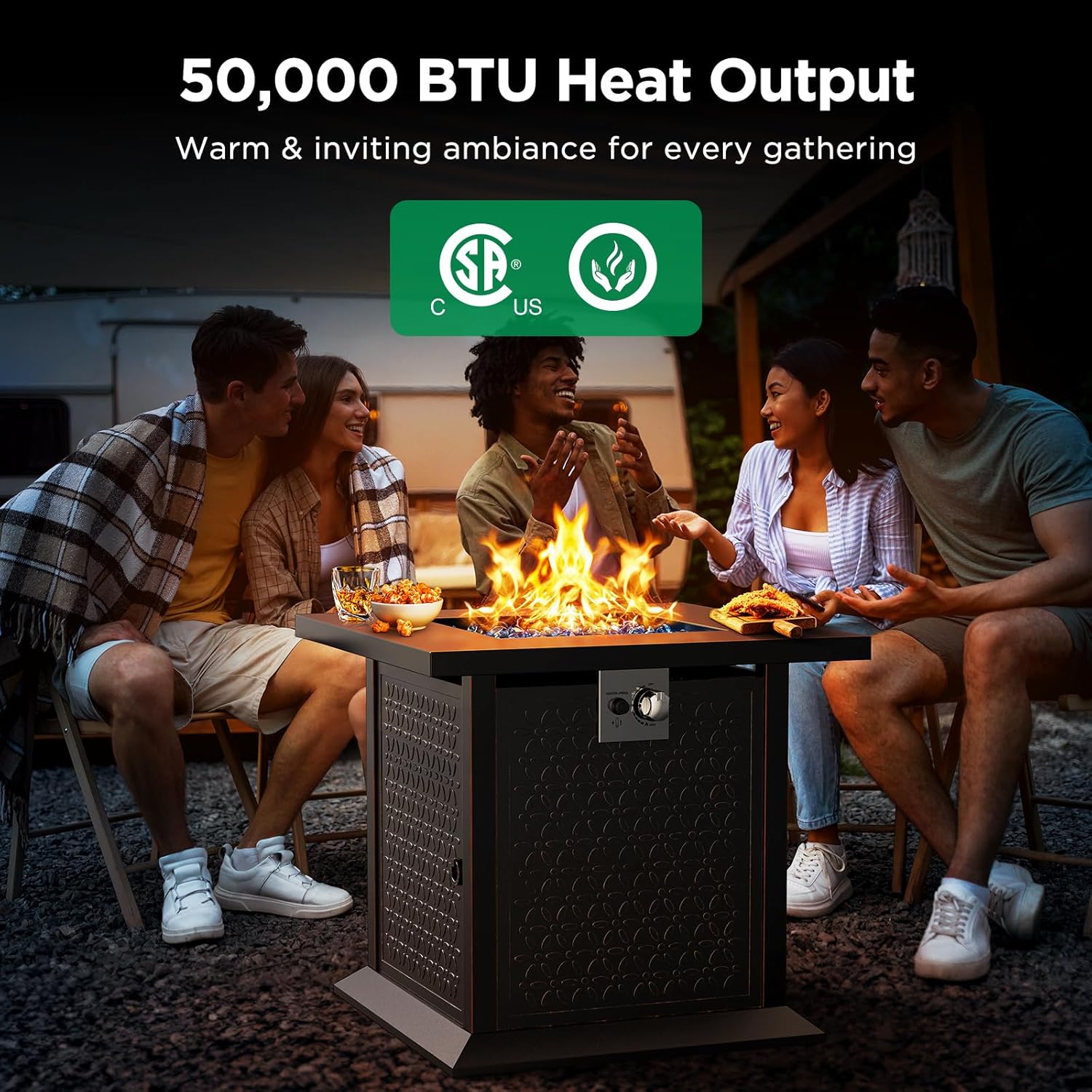 Get pleasure from Hotter Out of doors Area: This CSA-certified propane fireplace pit boasts highly effective 50,000 BTU warmth output that may remodel chilly evenings into heat gatherings. The fireplace pit additionally capabilities as a espresso desk in the course of the day, making it best for leisure areas together with patios, porches, and decks.