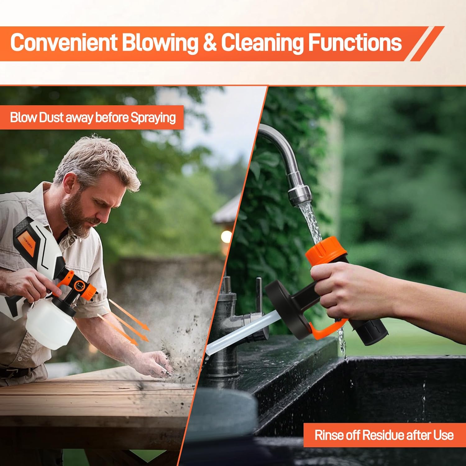 Excessive-Energy Paint Sprayer for Heavy-Responsibility Duties: Geared up with a 1000W motor and 1200ml removable tank, this home portray instrument effortlessly sprays coatings with out clogging. Good for decks, partitions, or out of doors furnishings refinishing – work longer with fewer refills.