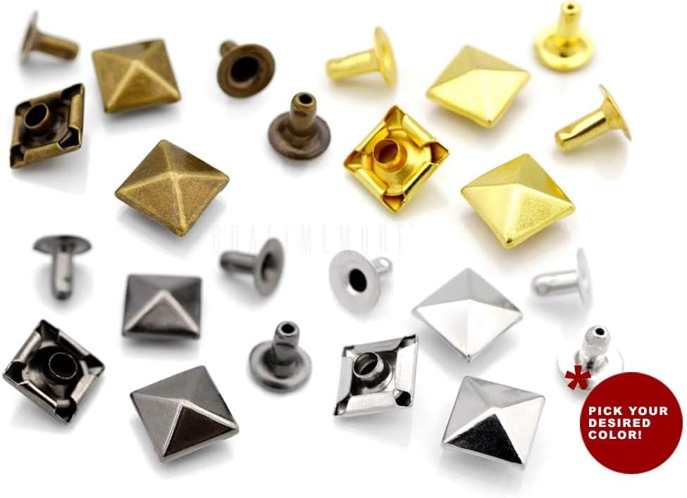 7 MM = 0.27″ , 10 MM = 0.39″ Pyramid Spike Rivet Studs