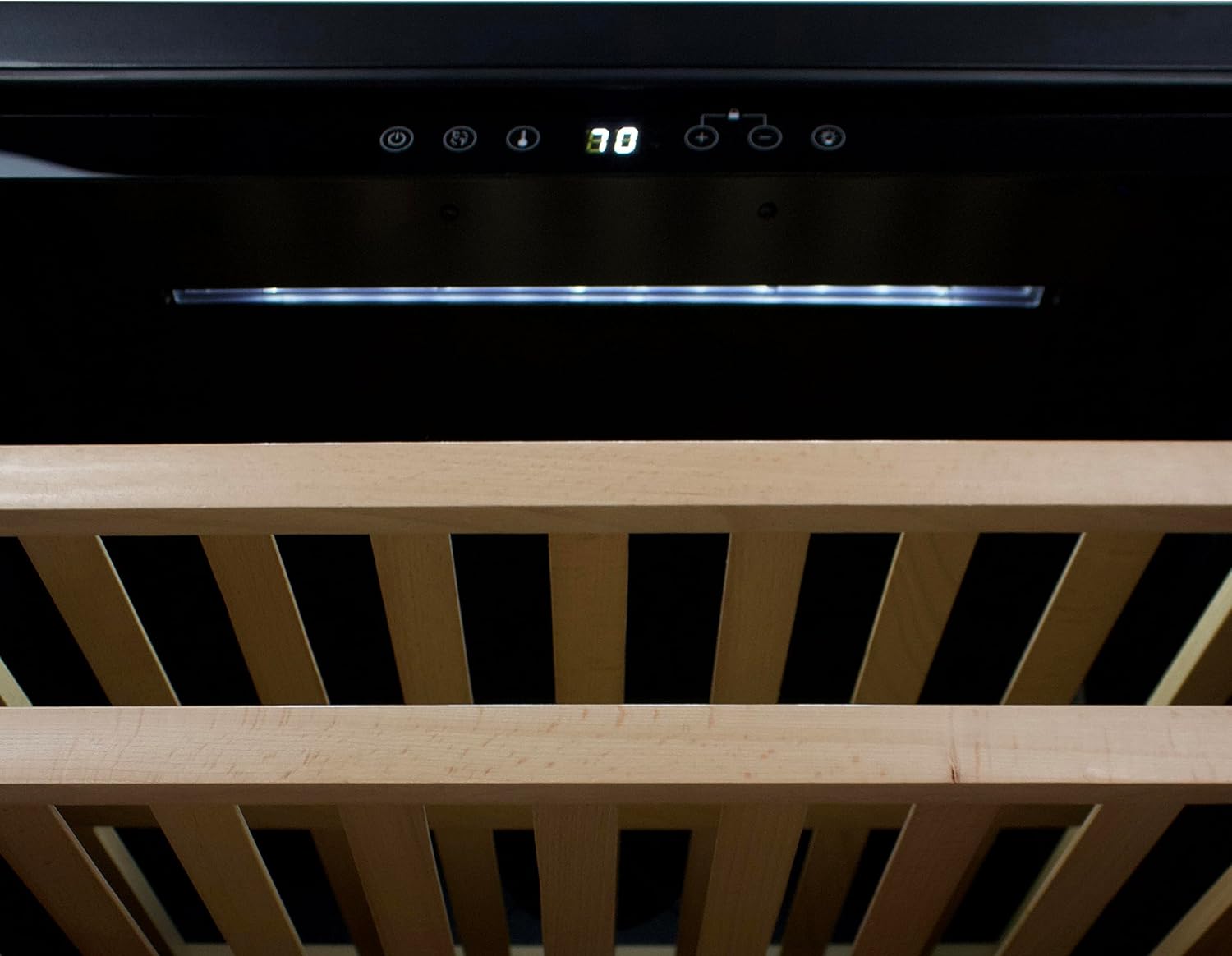 51 BOTTLE STORAGE: This wine fridge comfortably homes as much as 51 bottles of your cherished purple, white, or glowing wines. Accommodating as much as 51 bottles on specifically designed cabinets with ahead dealing with wood slats and grooves to carry bottles in place, this fridge matches seamlessly into your house with its smooth, space-saving design and insulated glass door.