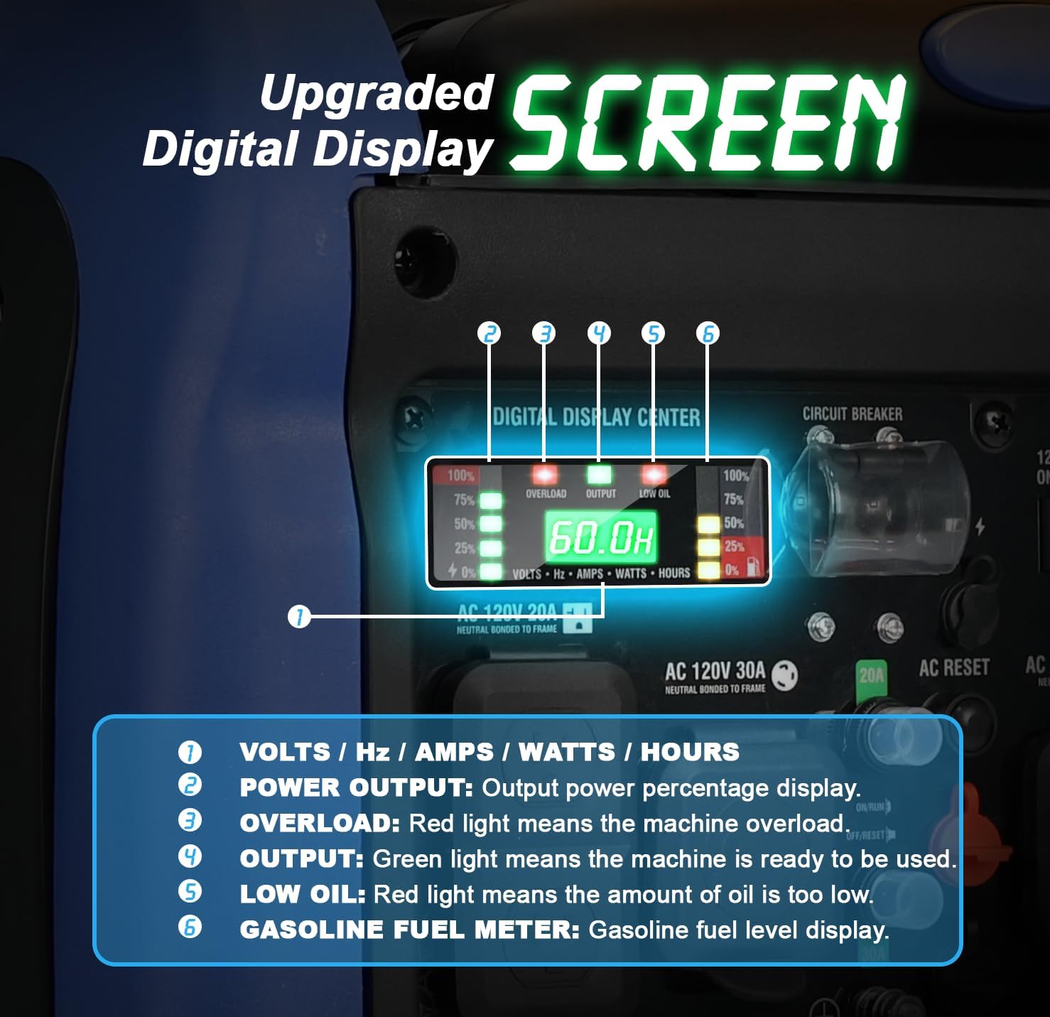 Energy Extra Home equipment:With 2*120V 20A, 1*120V 30A, 1*120V/240V 30A twin voltage plug (Switchable to 120V or 240V with switch change), 2*USB port to resolve the output wants of typical home equipment. Massive panel with many interfaces, can provide energy to a bigger variety of home equipment concurrently with out switch change