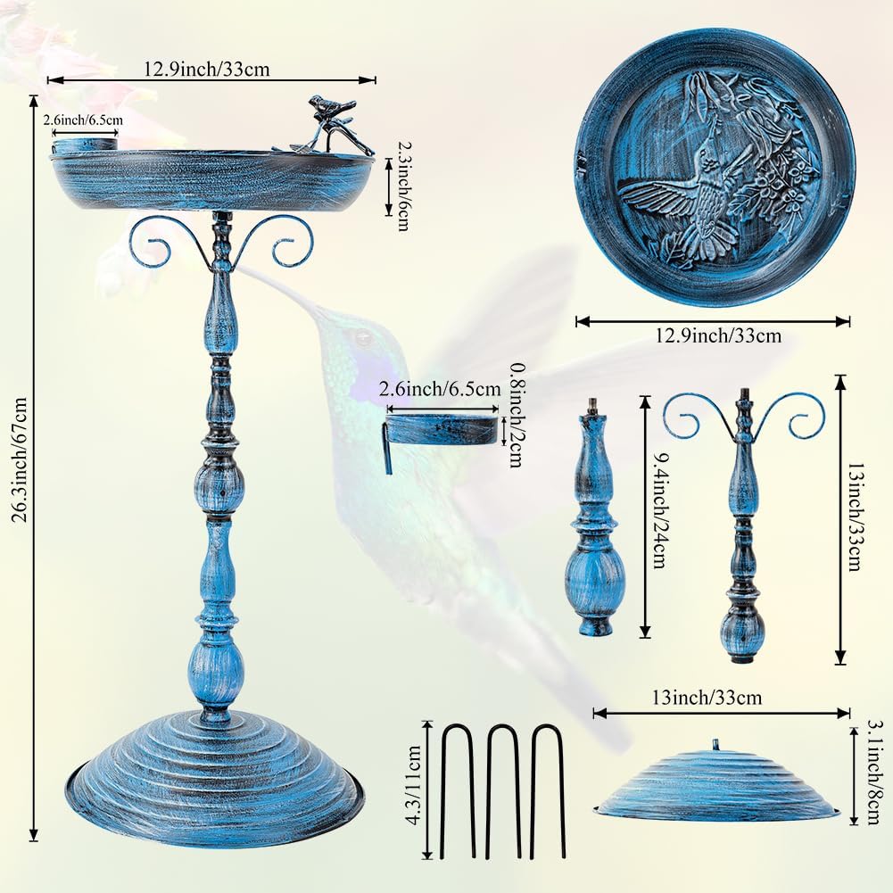 Be the first to review “DREAMSOUL 26″ Tall Pedestal Bird Bath for Outside, Metal Blue Bird Bath with Hummingbird Carving for Yard Garden Decor”