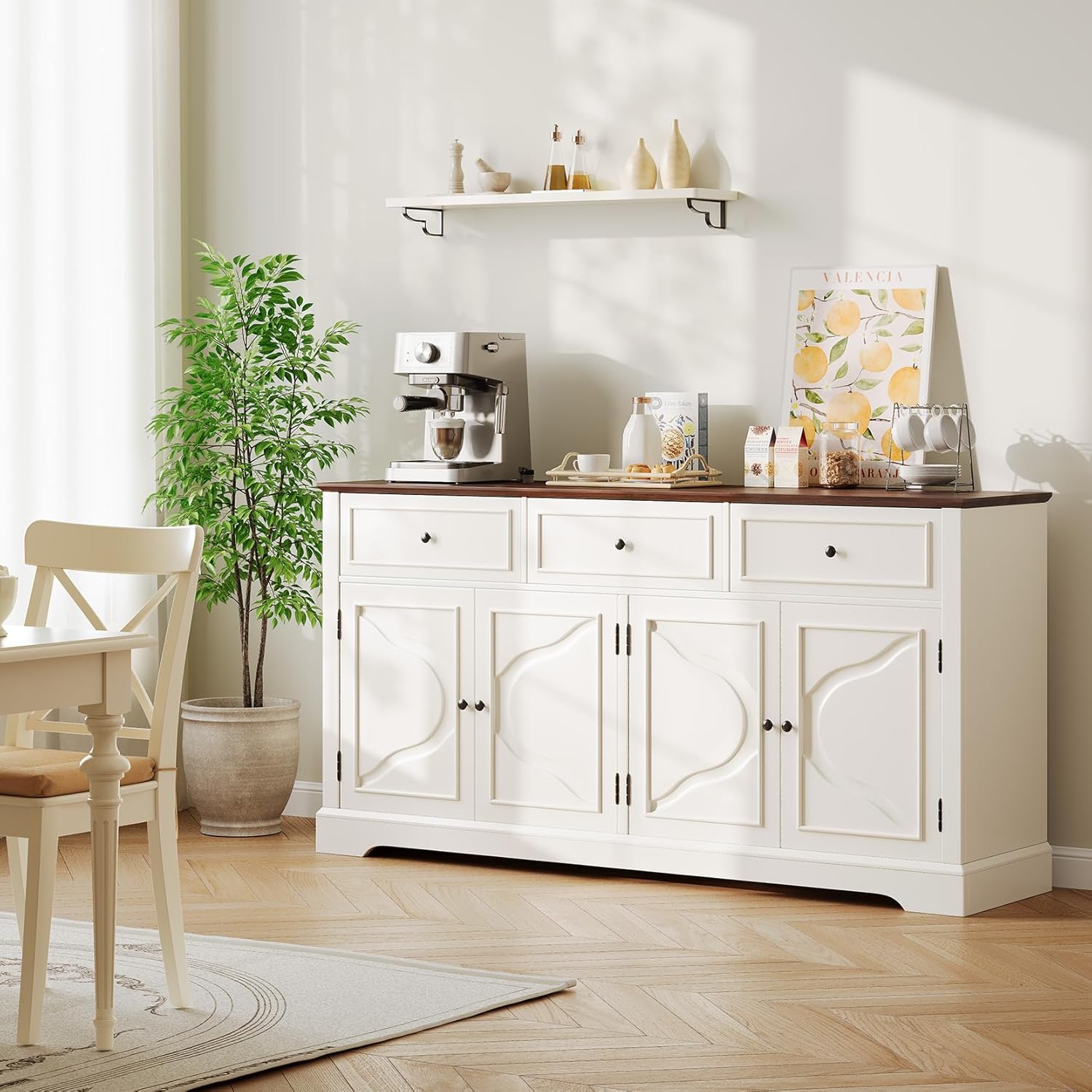【Trendy and Traditional Type】 Our sideboard buffet cupboard with storage includes a easy, elegant fashionable farmhouse model. The versatile white and pure wooden tabletop effortlessly enhances any house furnishings, including an enthralling contact to your eating space or espresso bar.