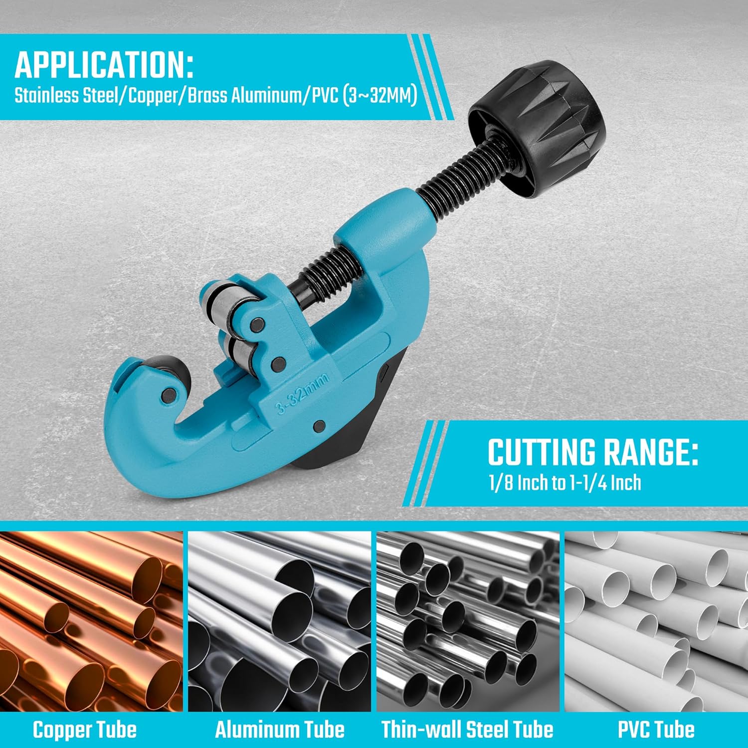 The cutting wheel is crafted from premium steel material, ensuring smooth and accurate cuts, thereby improving cutting efficiency and saving time and effort. High-density ball bearing rollers provide a secure grip on the pipe during the tube cutting process, preventing uneven cutting surfaces caused by unstable clamping