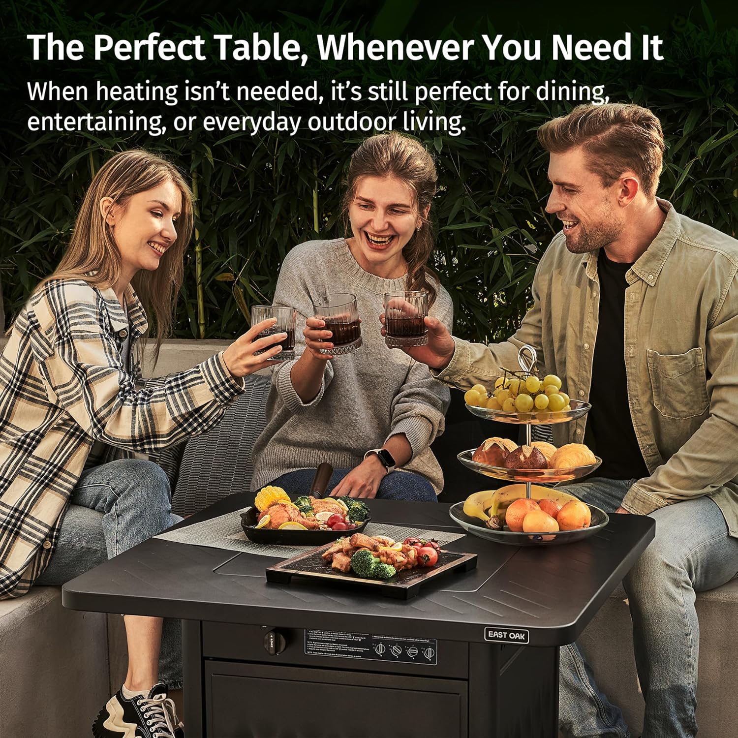 4-Season Versatility from Multi-Function Design – More than just a heat source, this 28-inch fire table also doubles as a stylish, functional table for drinks, snacks, and entertaining. Perfect for any occasion, it will add year-round comfort and convenience to any outdoor space.