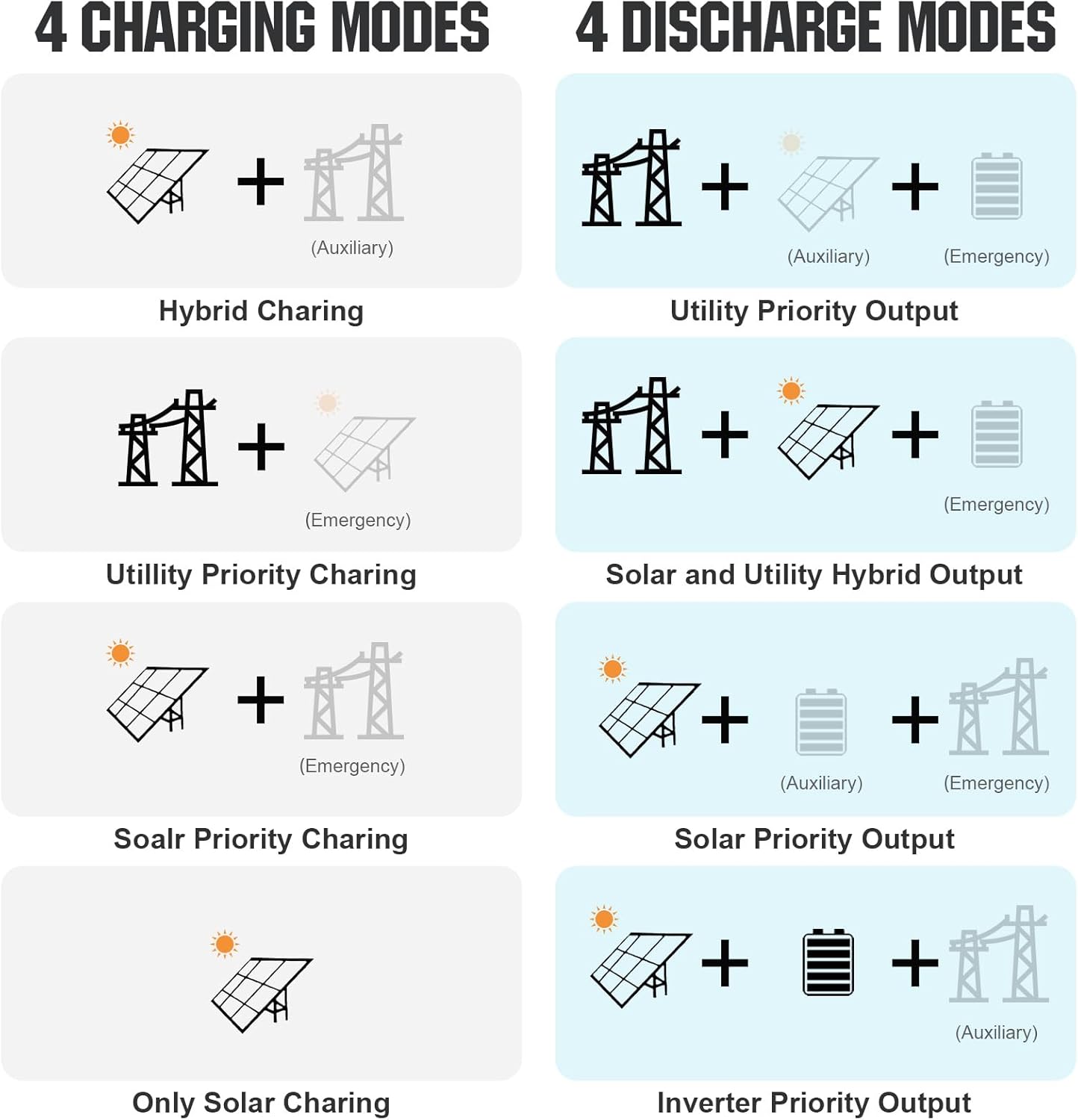 [Efficient and Powerful Solar Hybrid Inverter] Rater output 10KW and 20KW peak energy,assist single-phase and split-phase output in a single gadget. Customizable AC enter time to avoid wasting each penny of your electrical energy invoice.